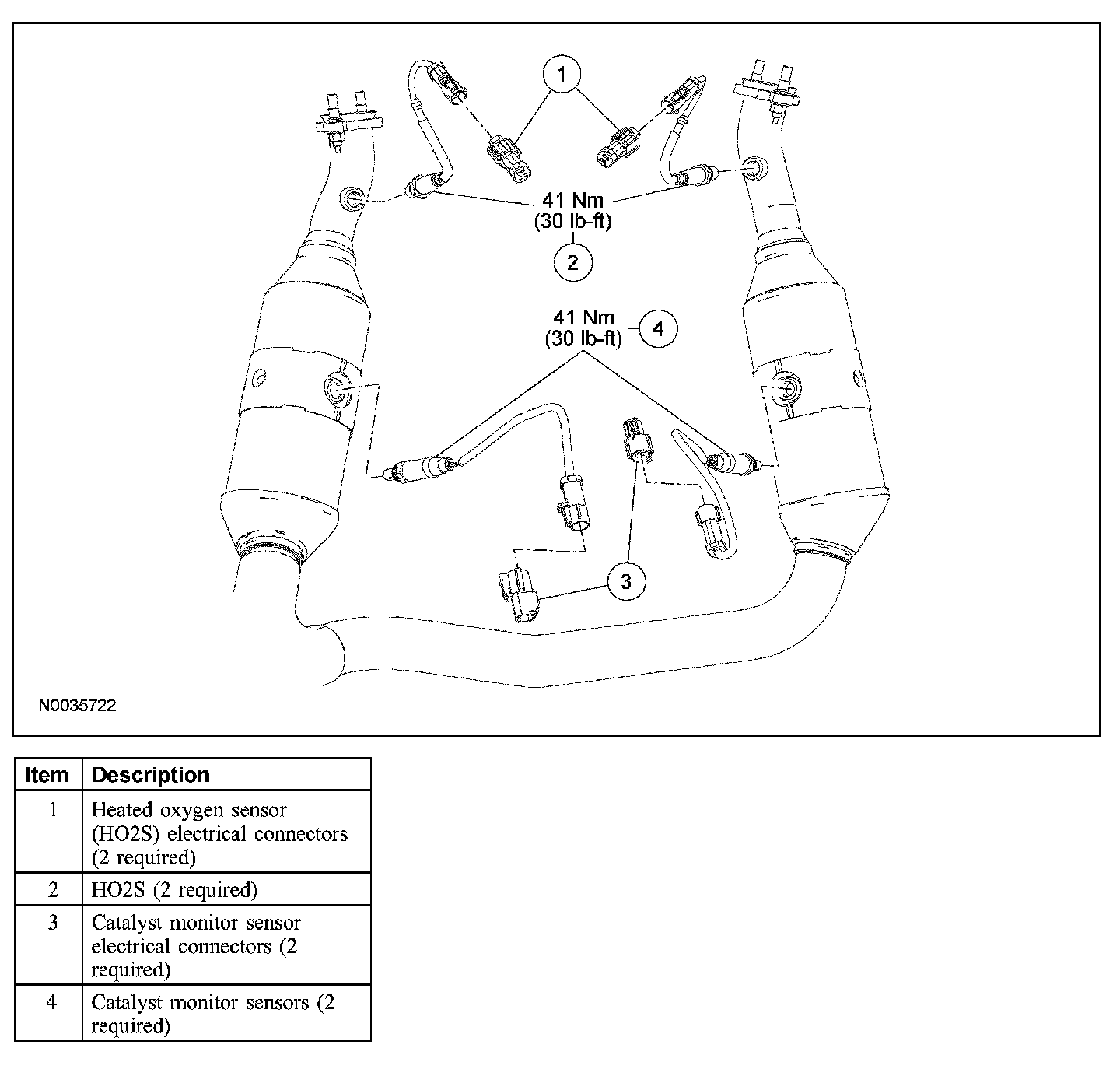 - To install, tighten to 41 Nm (30 lb-ft).
