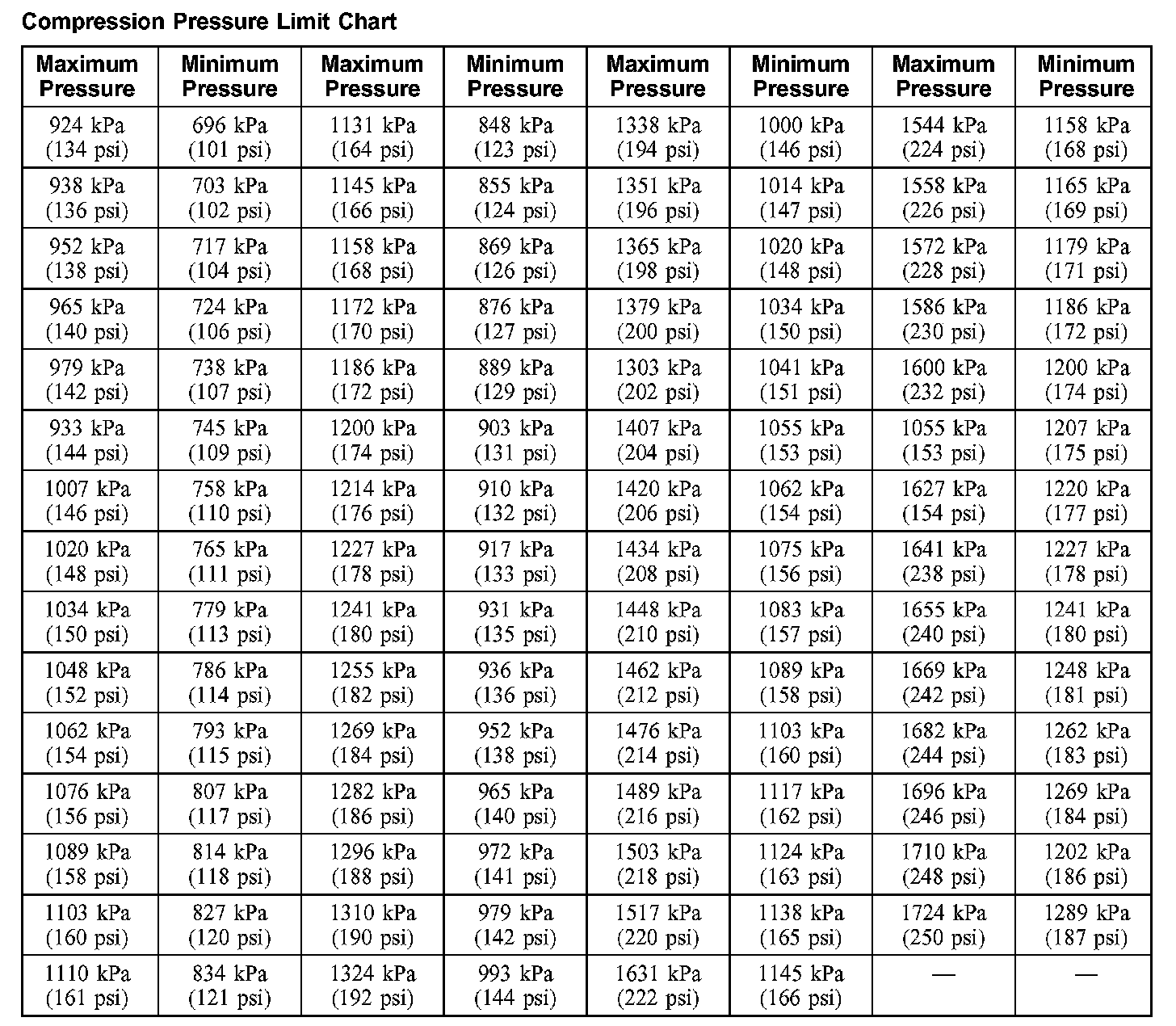Compression Pressure Limit Chart: