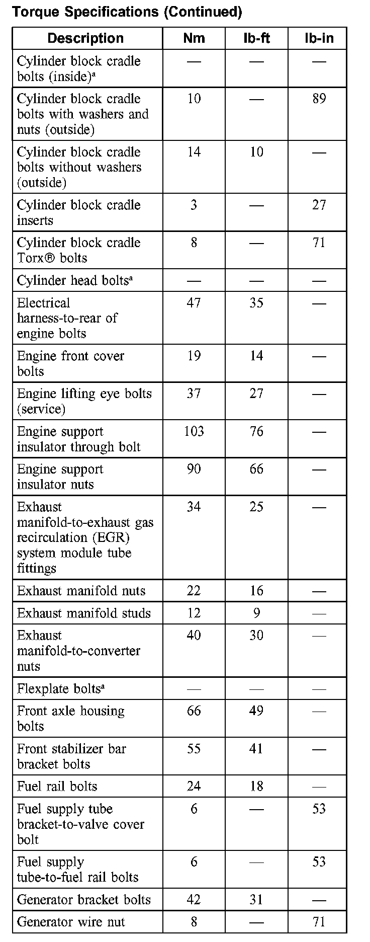 Torque Specifications