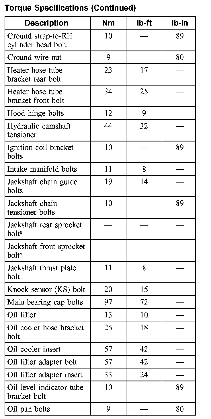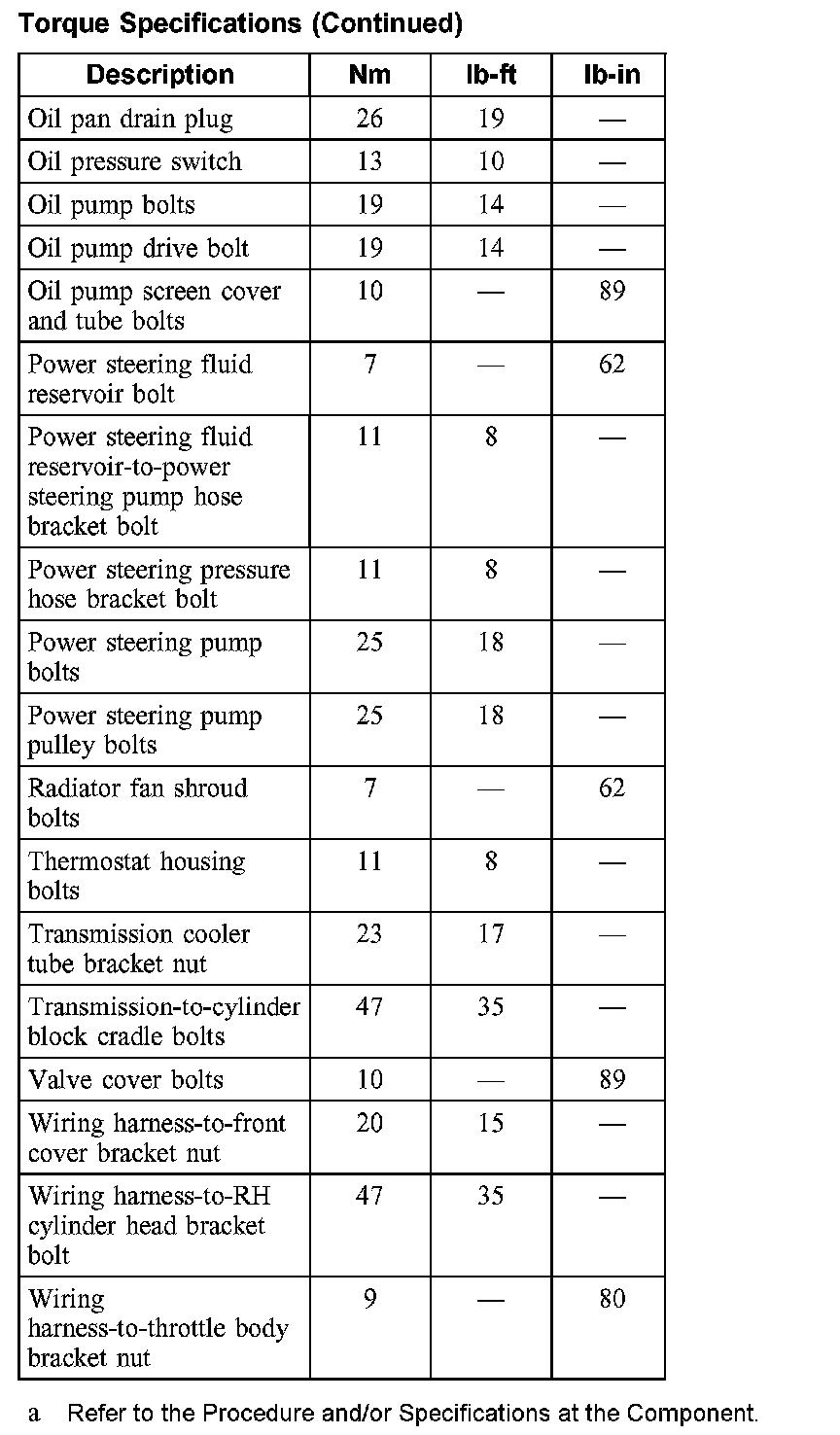 Torque Specifications: