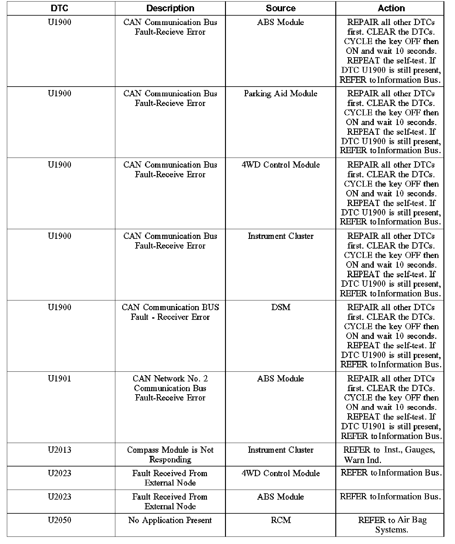 DIAGNOSTIC TROUBLE CODE CHART