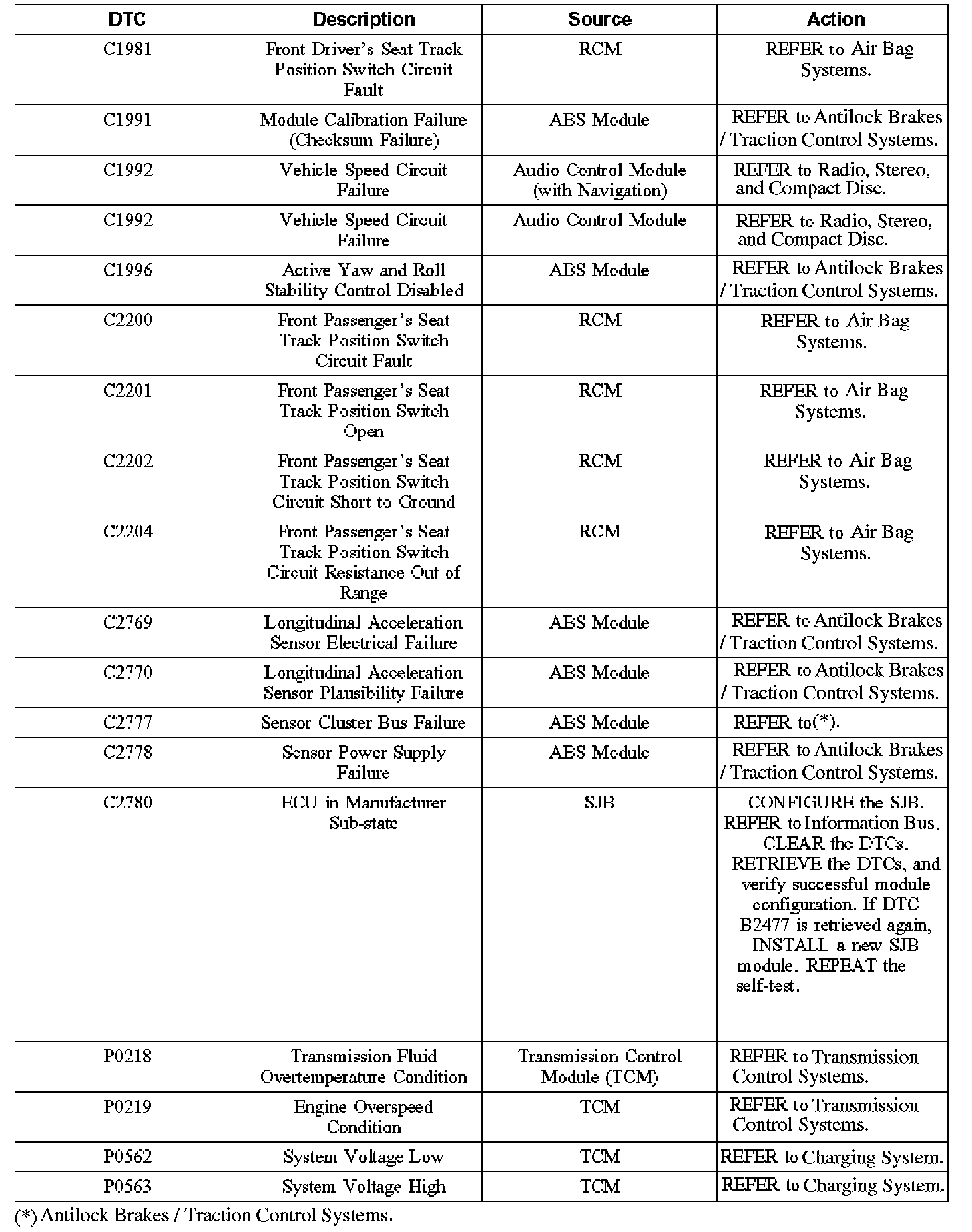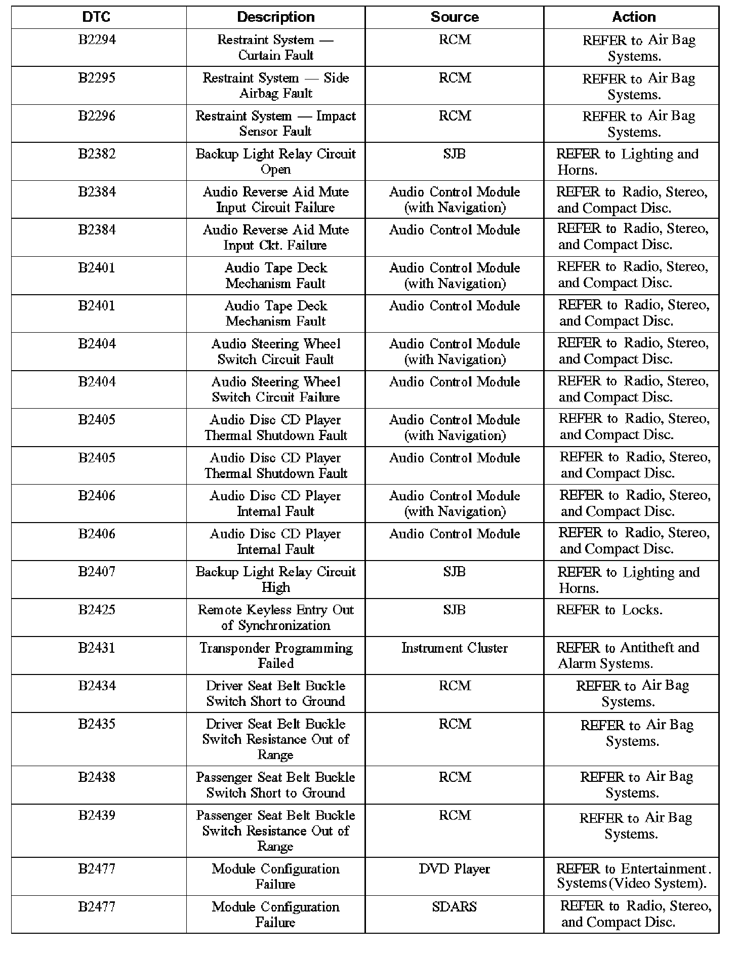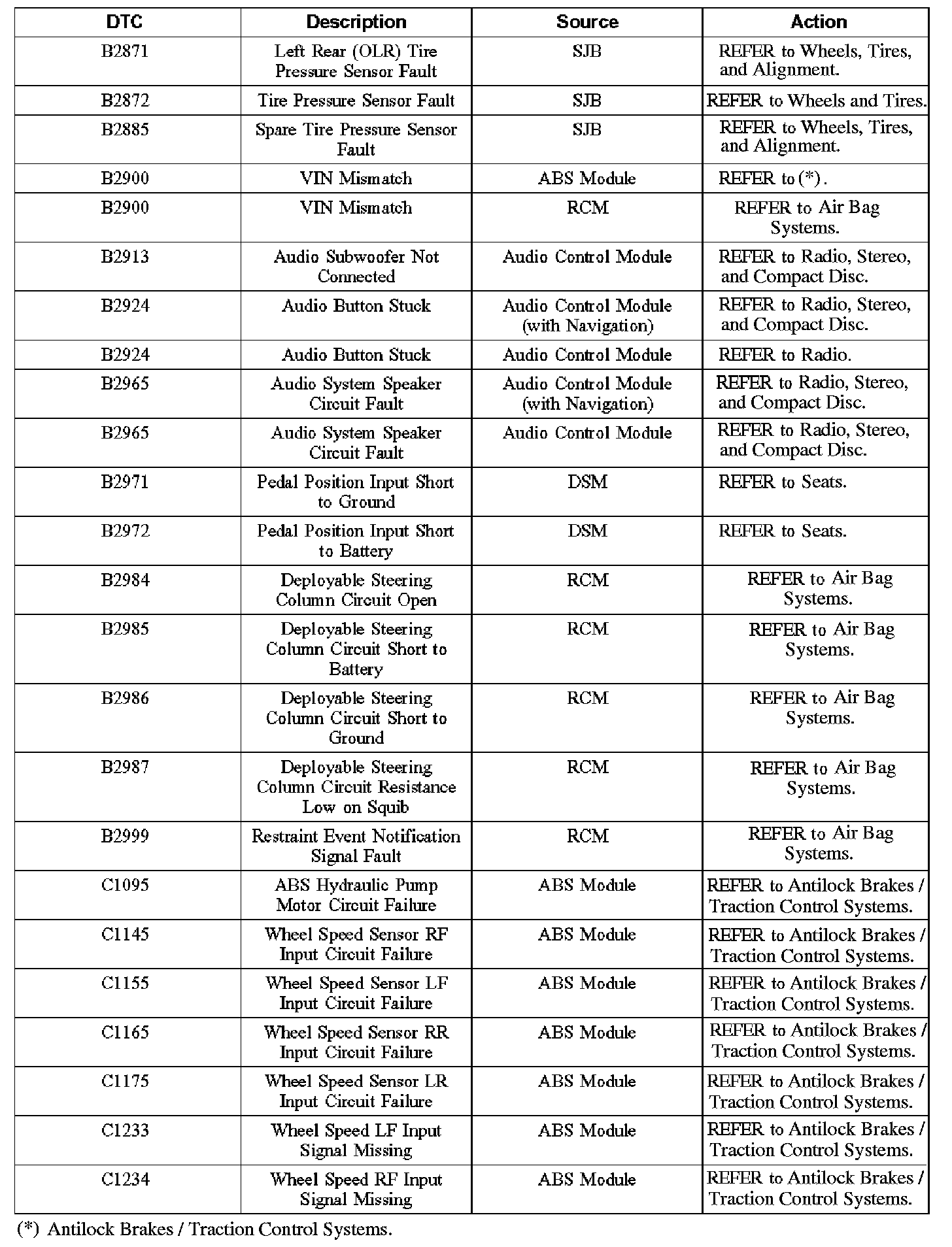 Home >> Ford >> 2006 >> Explorer 2WD V8-4.6L VIN 8 >> Repair and Diagnosis >> Body and Frame >> Body Control Systems >> Testing and Inspection >> Diagnostic Trouble Code Descriptions