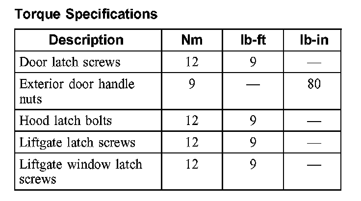 Torque Specifications: