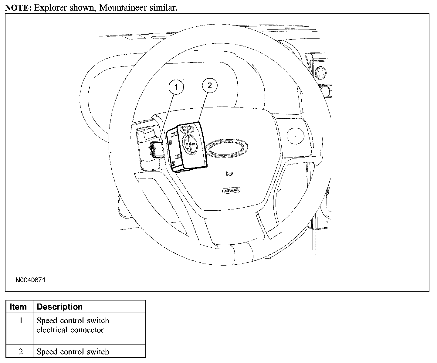 Home >> Ford >> 2006 >> Explorer 2WD V8-4.6L VIN 8 >> Repair and Diagnosis >> Cruise Control >> Cruise Control Switch >> Service and Repair