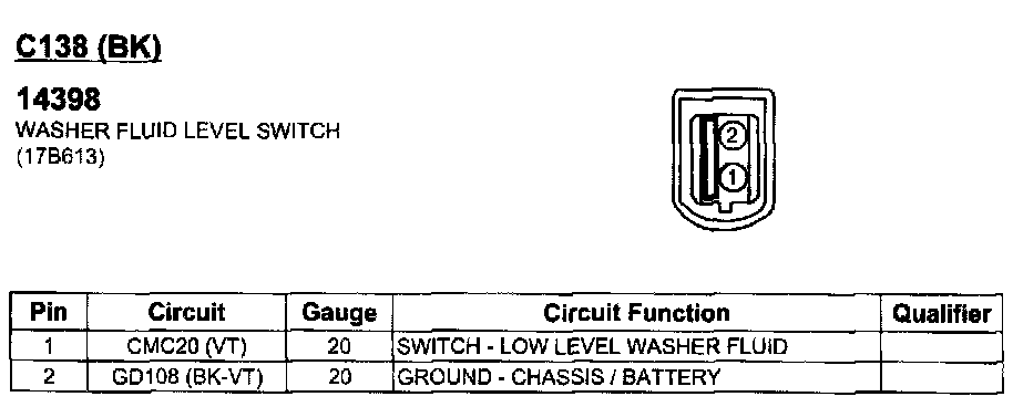 Washer Fluid Level Switch