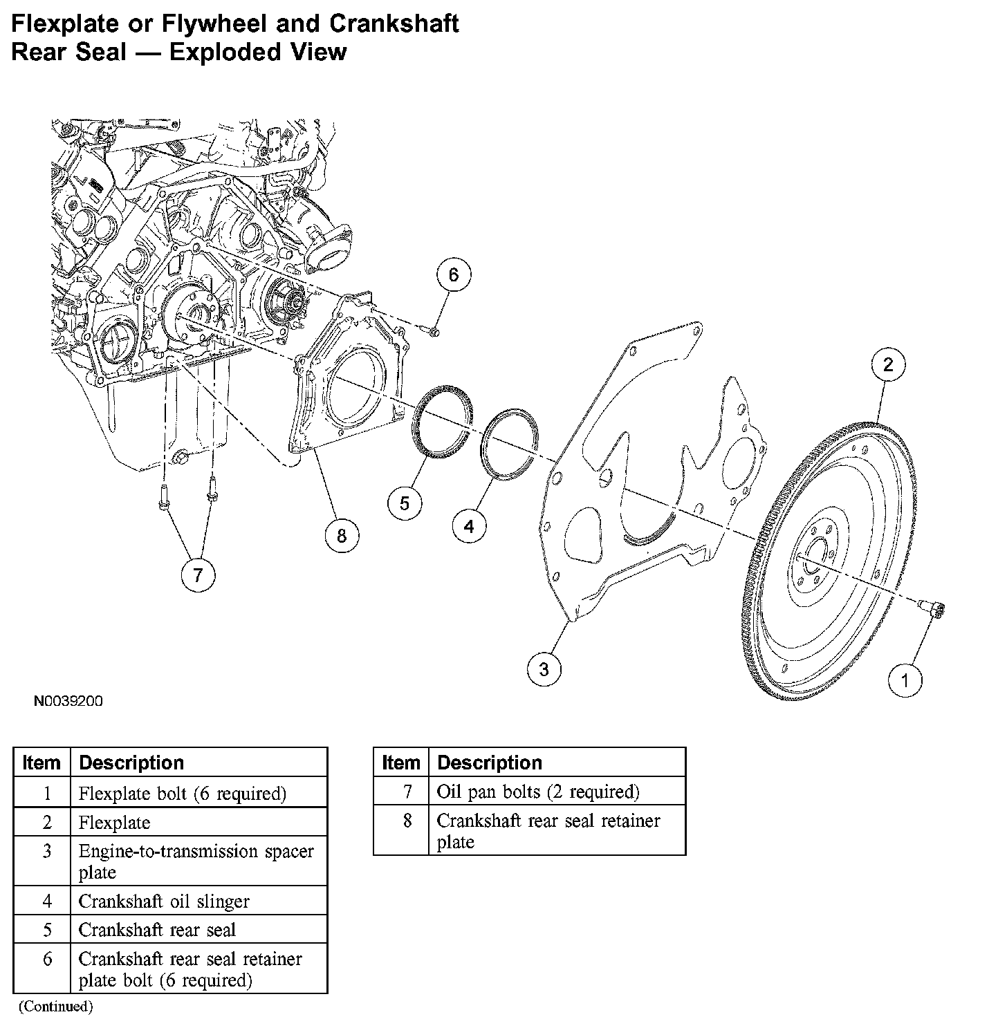 Flexplate or Flywheel and Crankshaft Rear Seal - Exploded View: