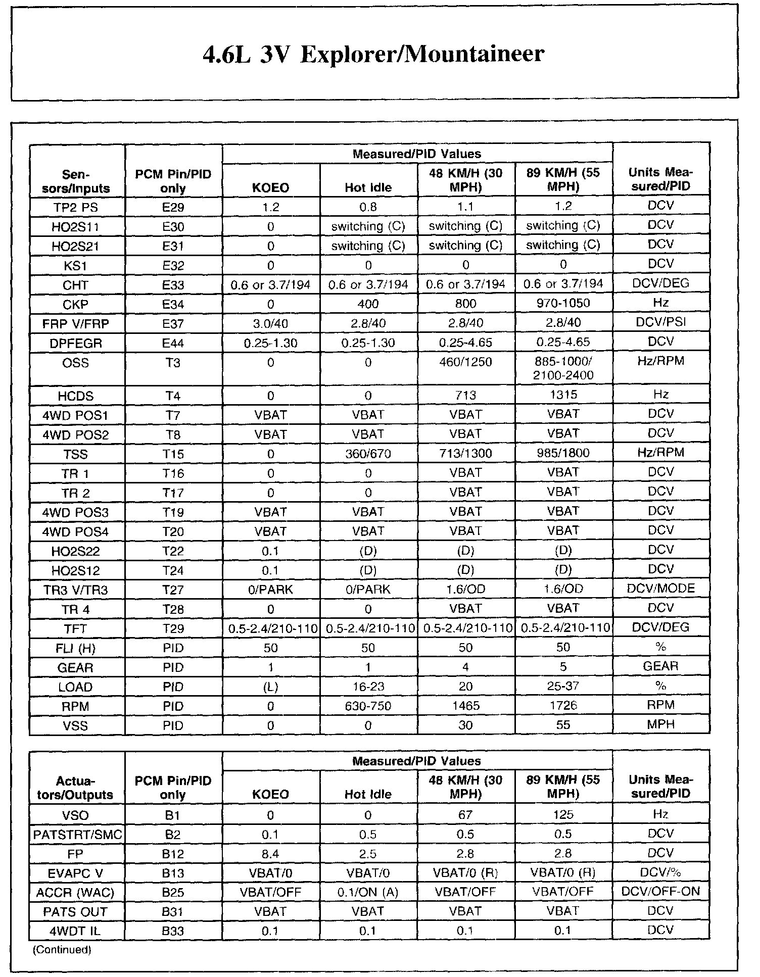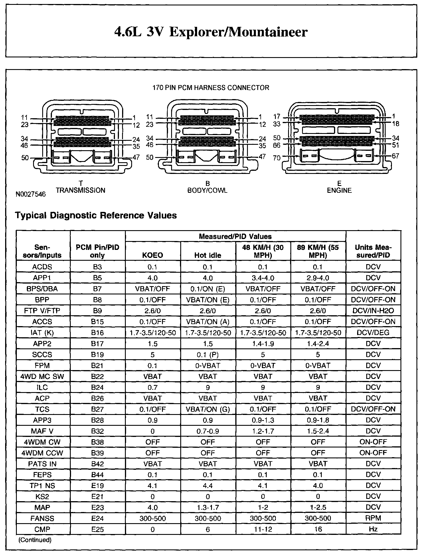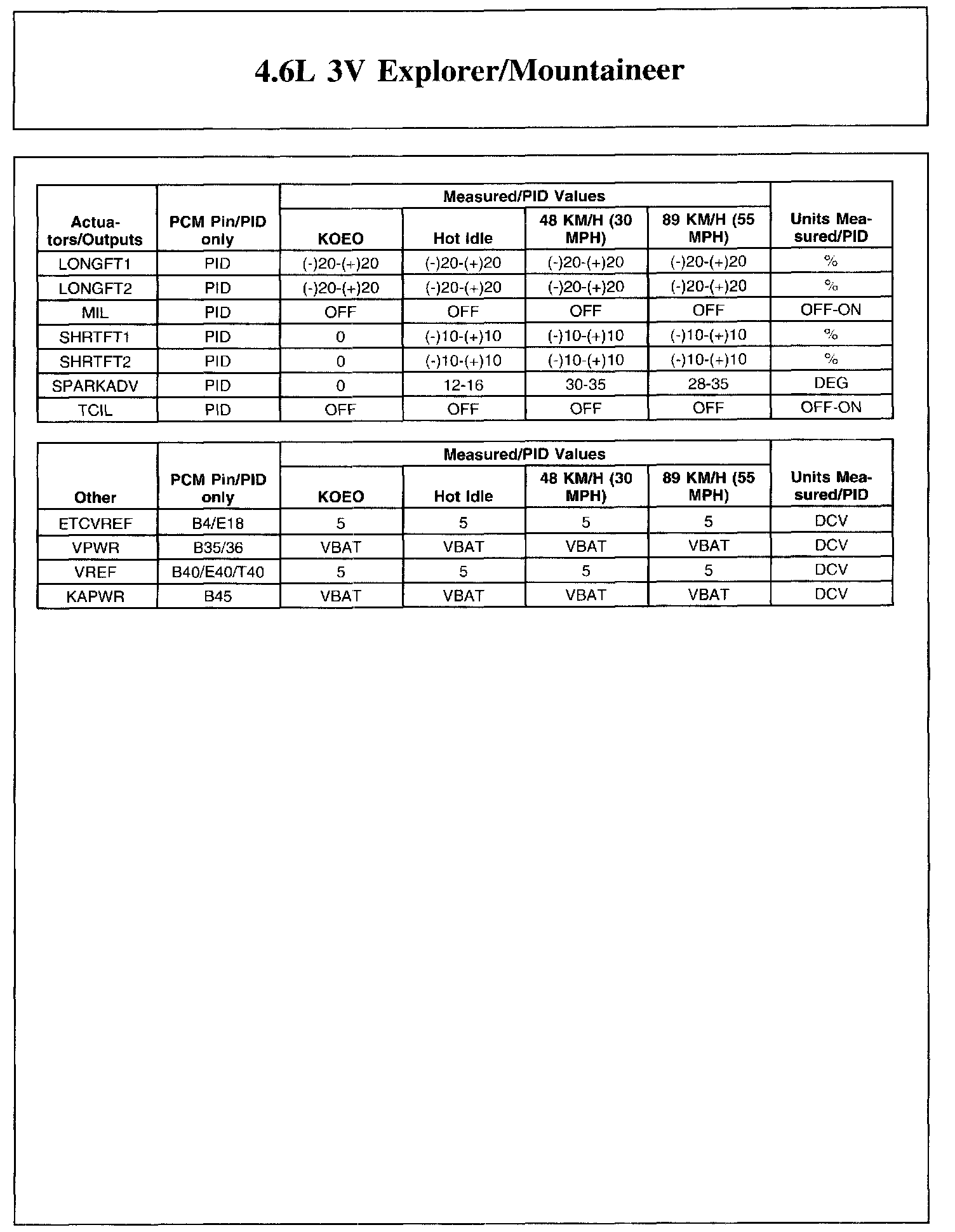 The Typical Diagnostic Reference Value Charts do not display fault parameter identifications (PIDs). These are PIDs which indicate a hard fault with the circuit. They display a value of YES or NO and are PIDs ending with the letter F.