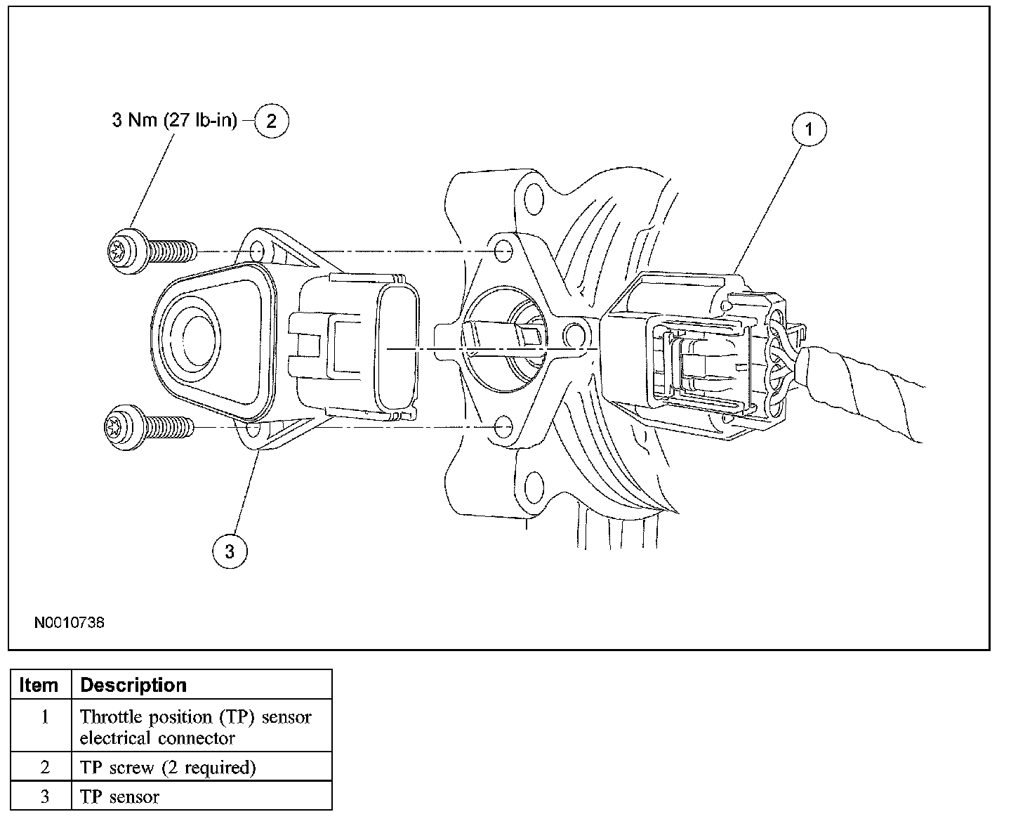 NOTE: When installing the new TP sensor, make sure that the radial locator tab on the TP sensor is aligned with the radial locator hole on the throttle body.