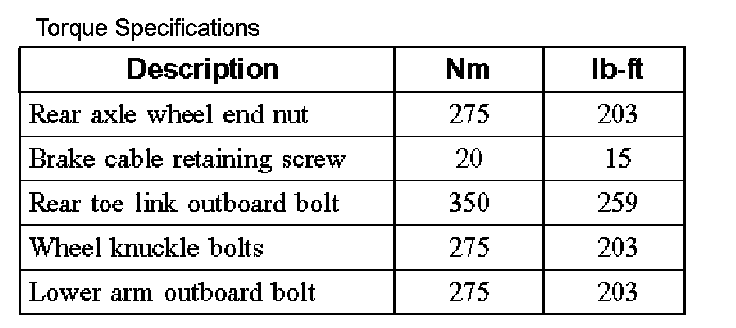 Torque Specifications: