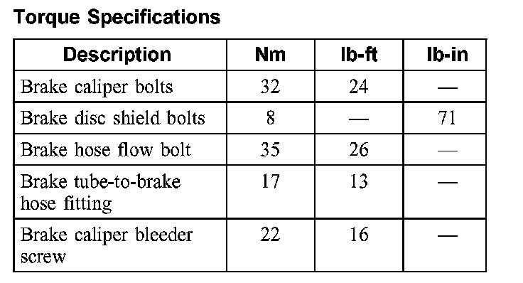 Torque Specifications, rear: