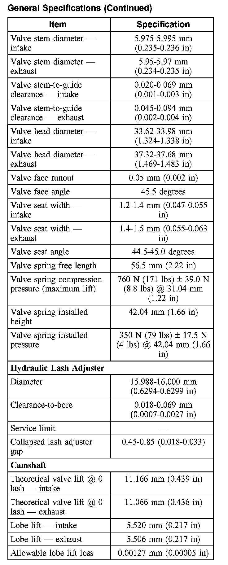 General Specifications