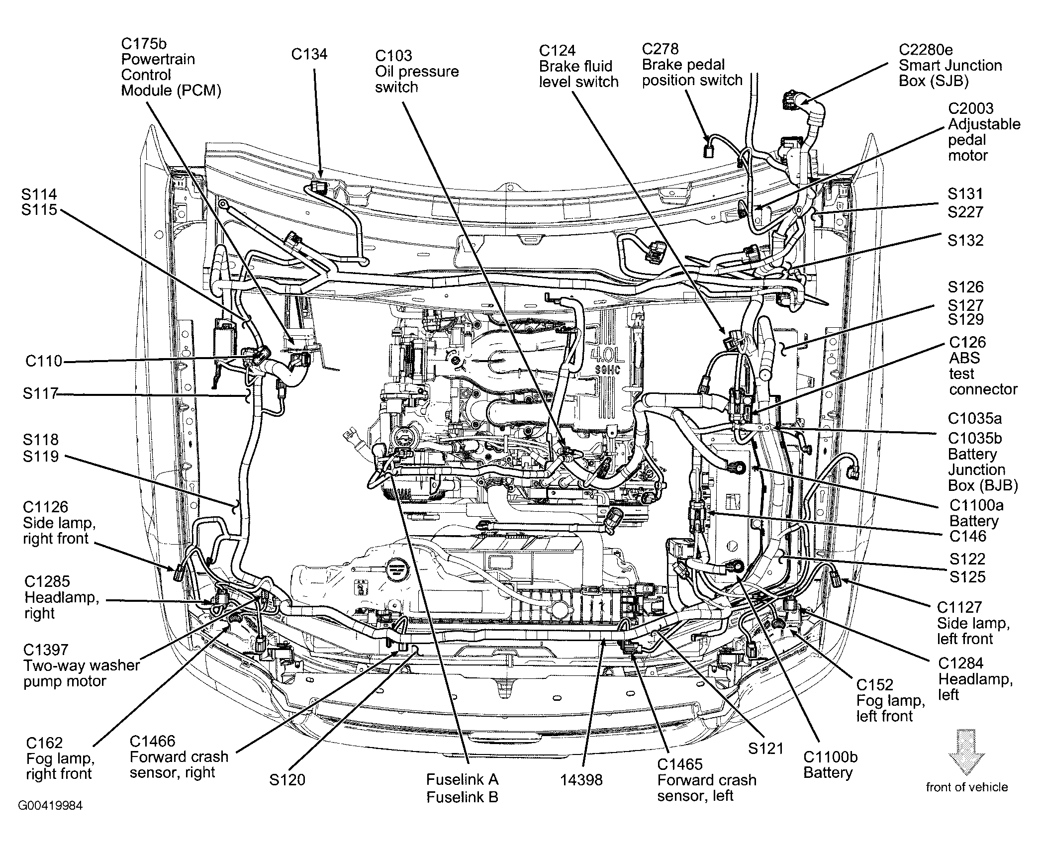 Battery Junction Box (BJB) Left side of engine compartment, at fender apron. See Figure.
