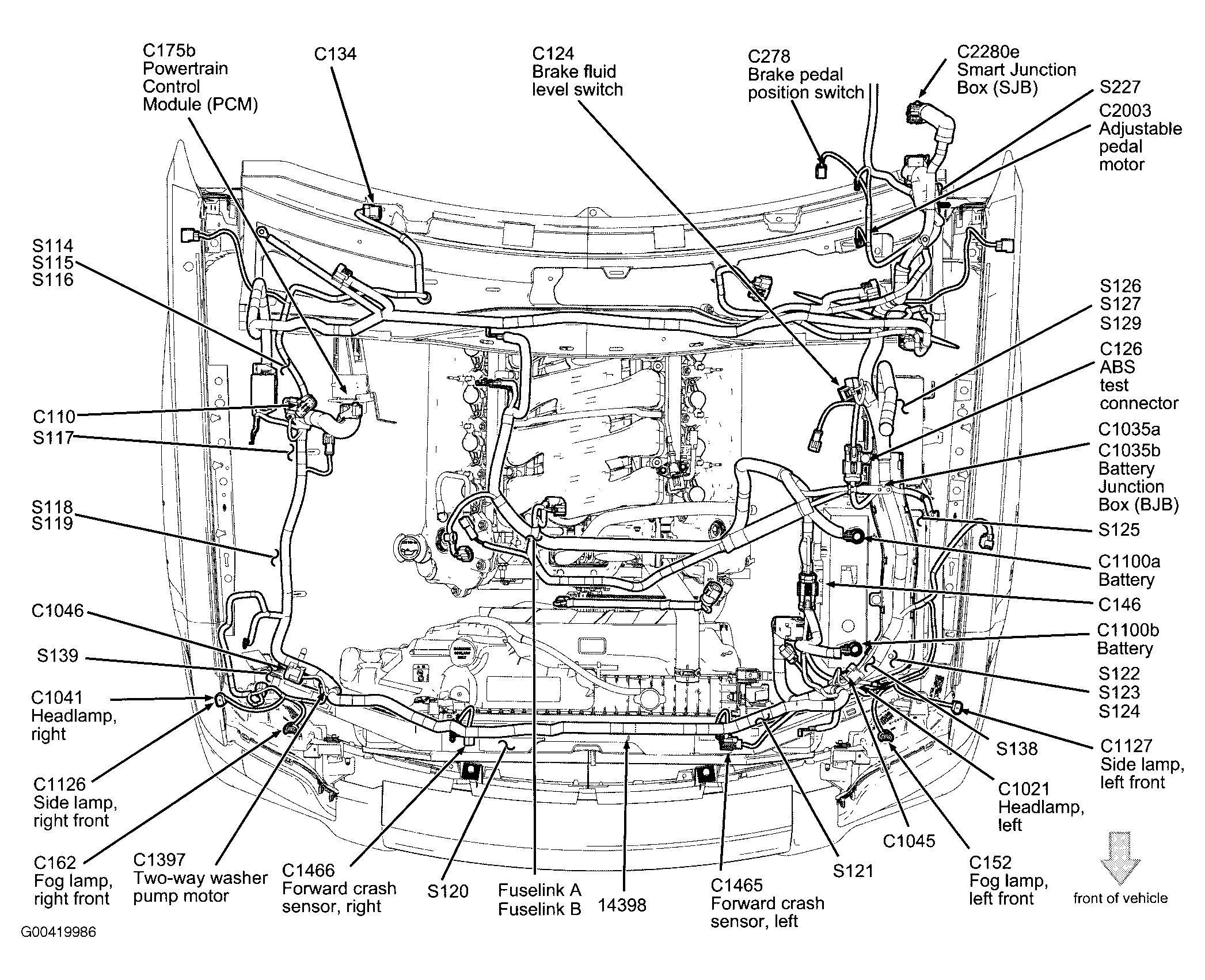 Fuselink B (4.6L) Top right front of engine. See Figure.