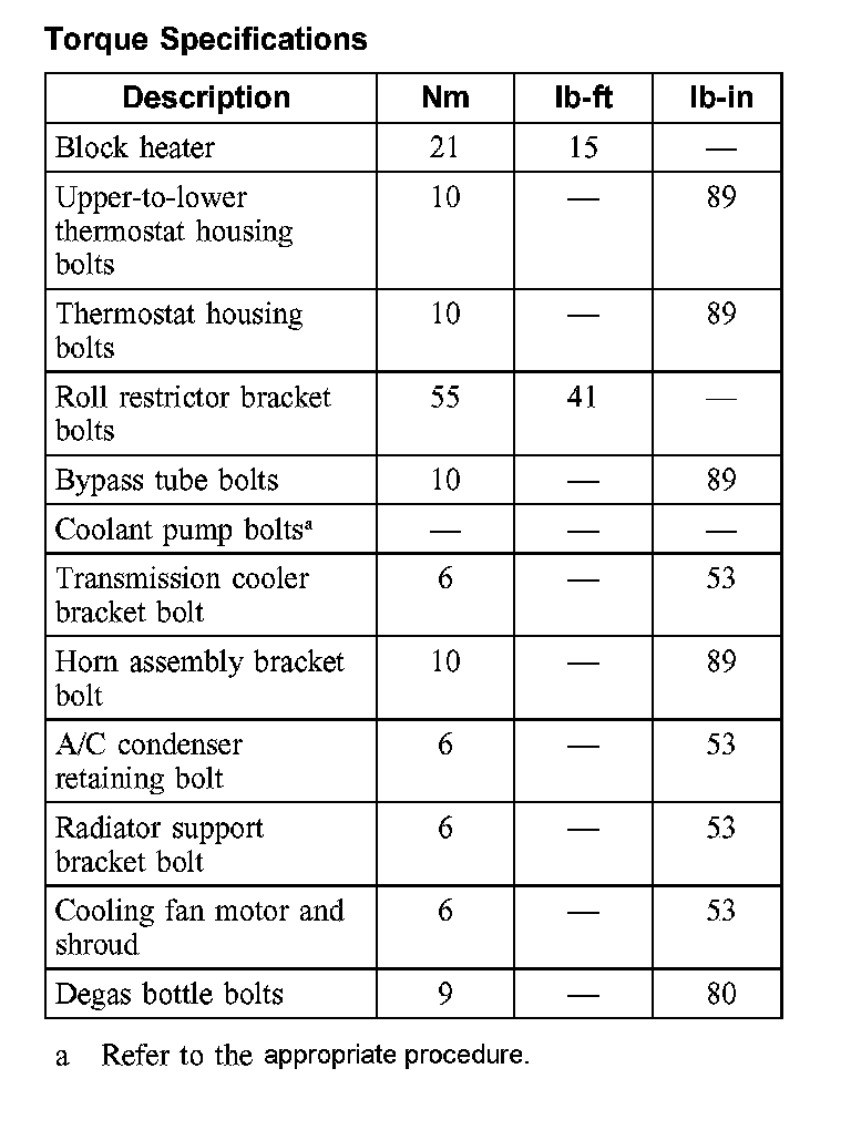 Torque Specifications