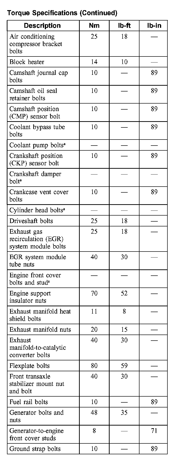 Torque Specifications