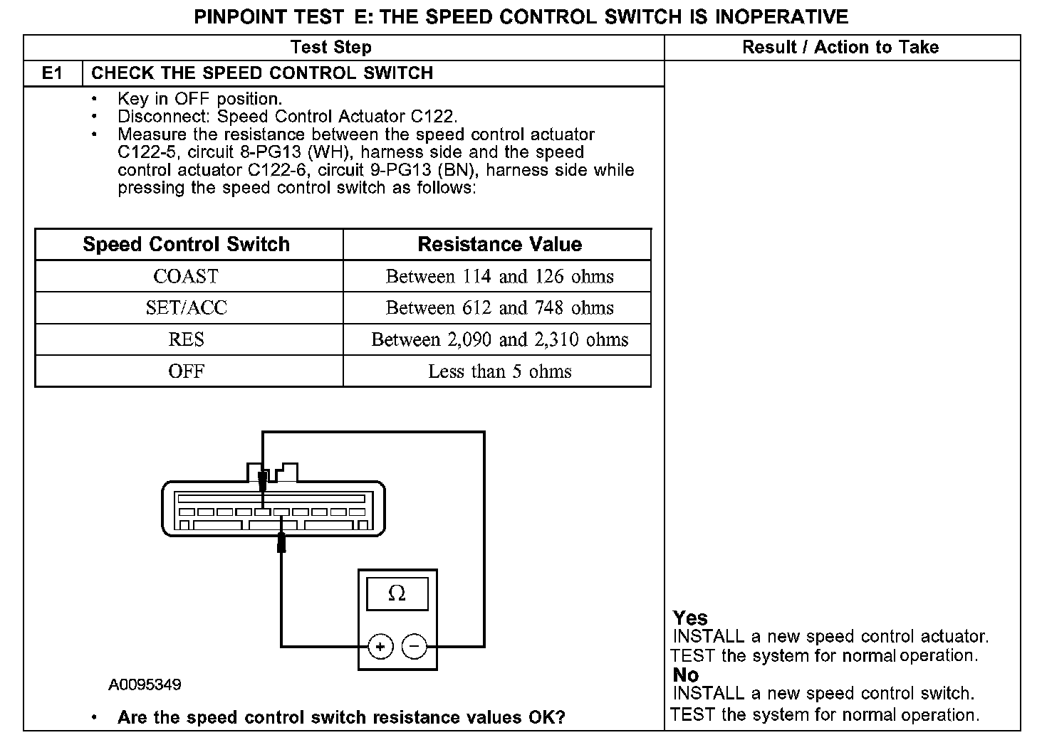 PINPOINT TEST E: THE SPEED CONTROL SWITCH IS INOPERATIVE