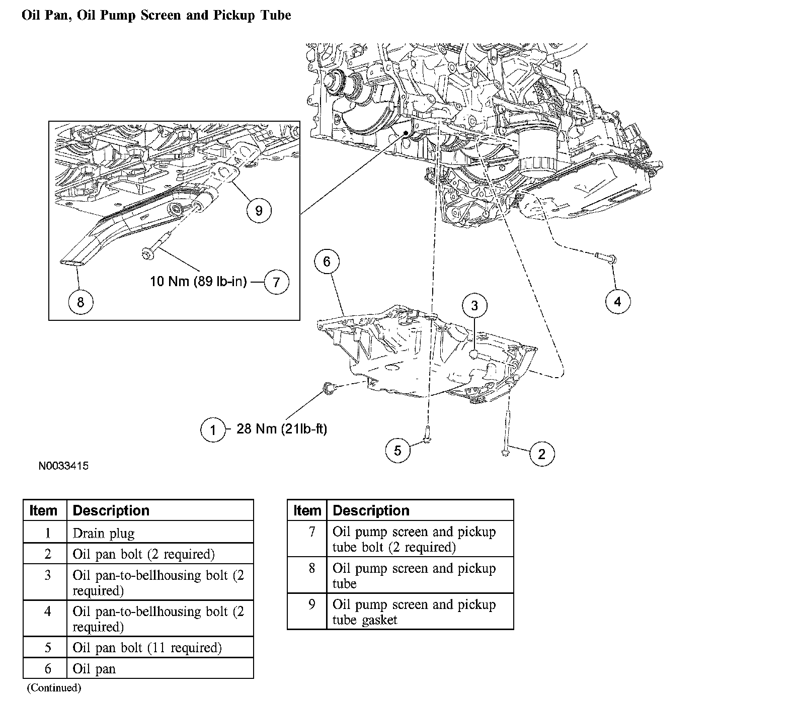Oil Pan, Oil Pump Screen and Pickup Tube:
