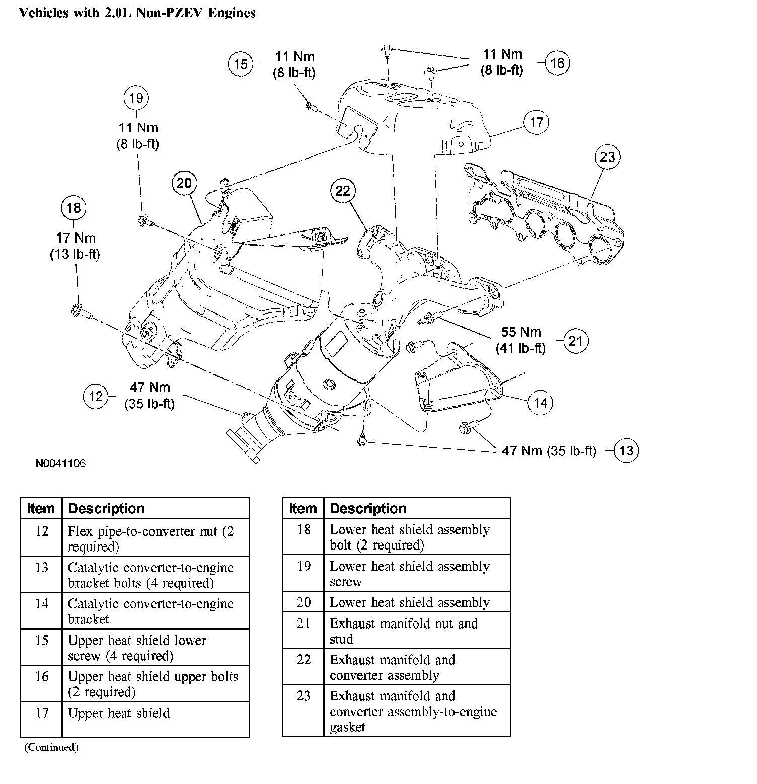 Vehicles with 2.0L Non-PZEV Engines: