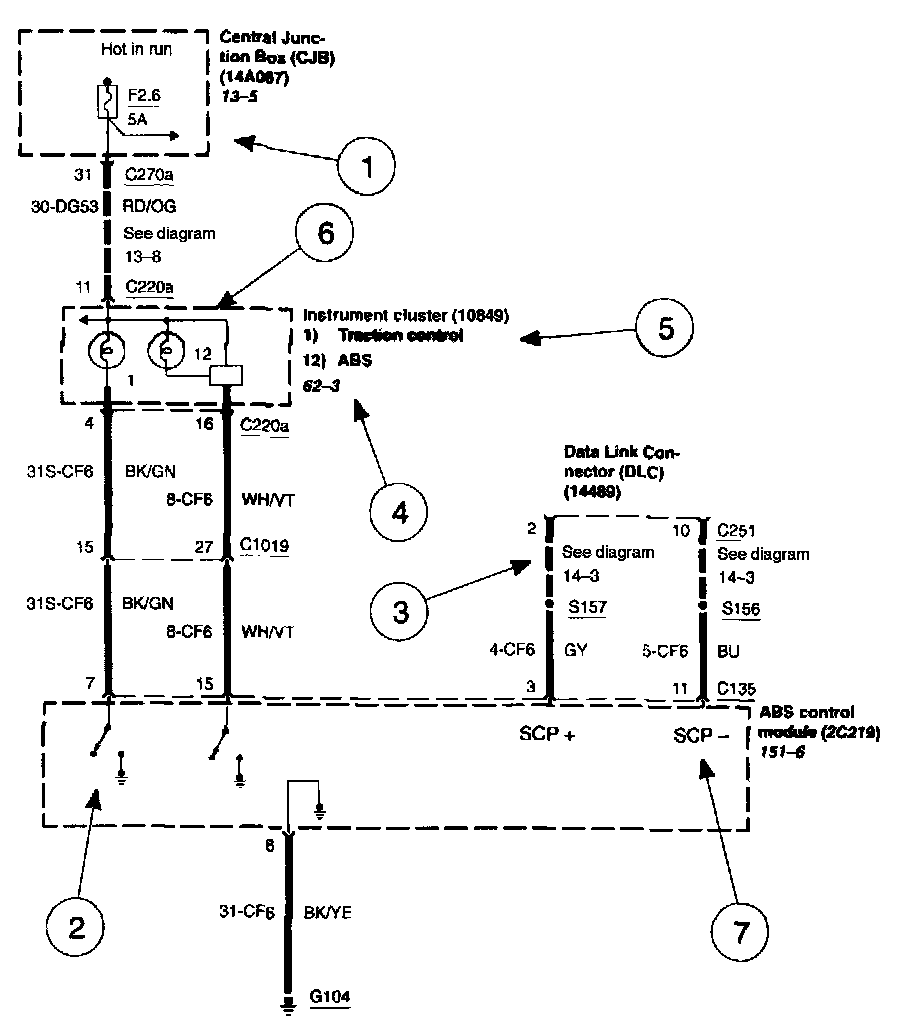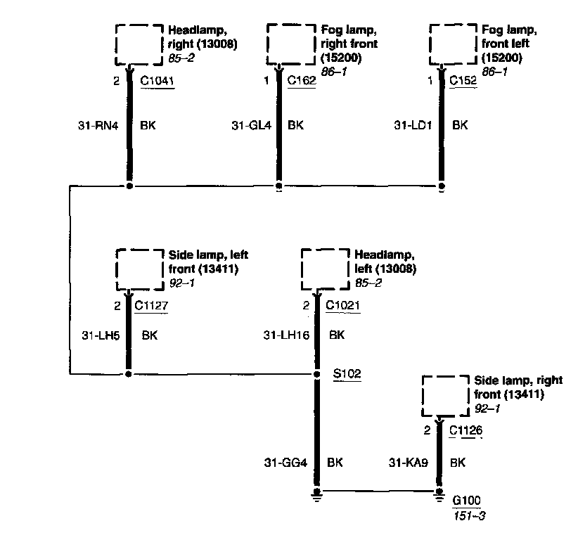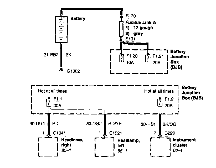 Each set normally starts with the component that powers the circuit, such as a fuse or the ignition switch. Current flow is shown from the power source at the top of the diagram to ground at the bottom of the diagram. In order to concentrate on the essential parts, power supply and ground connections are sometimes simplified by a dashed line in the diagrams. A full representation of the power supply of a fuse or the power distribution from a fuse to various components is given in the Power and Ground Distribution Diagrams. Full representation of the ground connections are shown in the Power and Ground Distribution Diagrams.