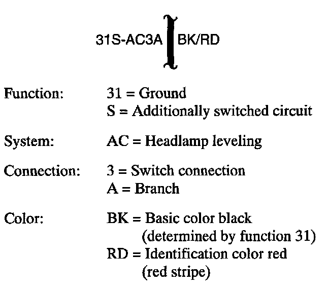 Immediately following the system letter code is the connection number specific to that system. A branch identification is used to differentiate wires in one connection with the same function.