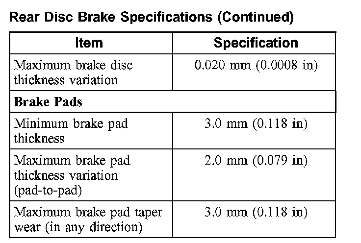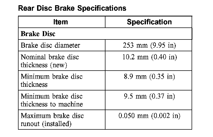 Rear Disc Brake Specifications: