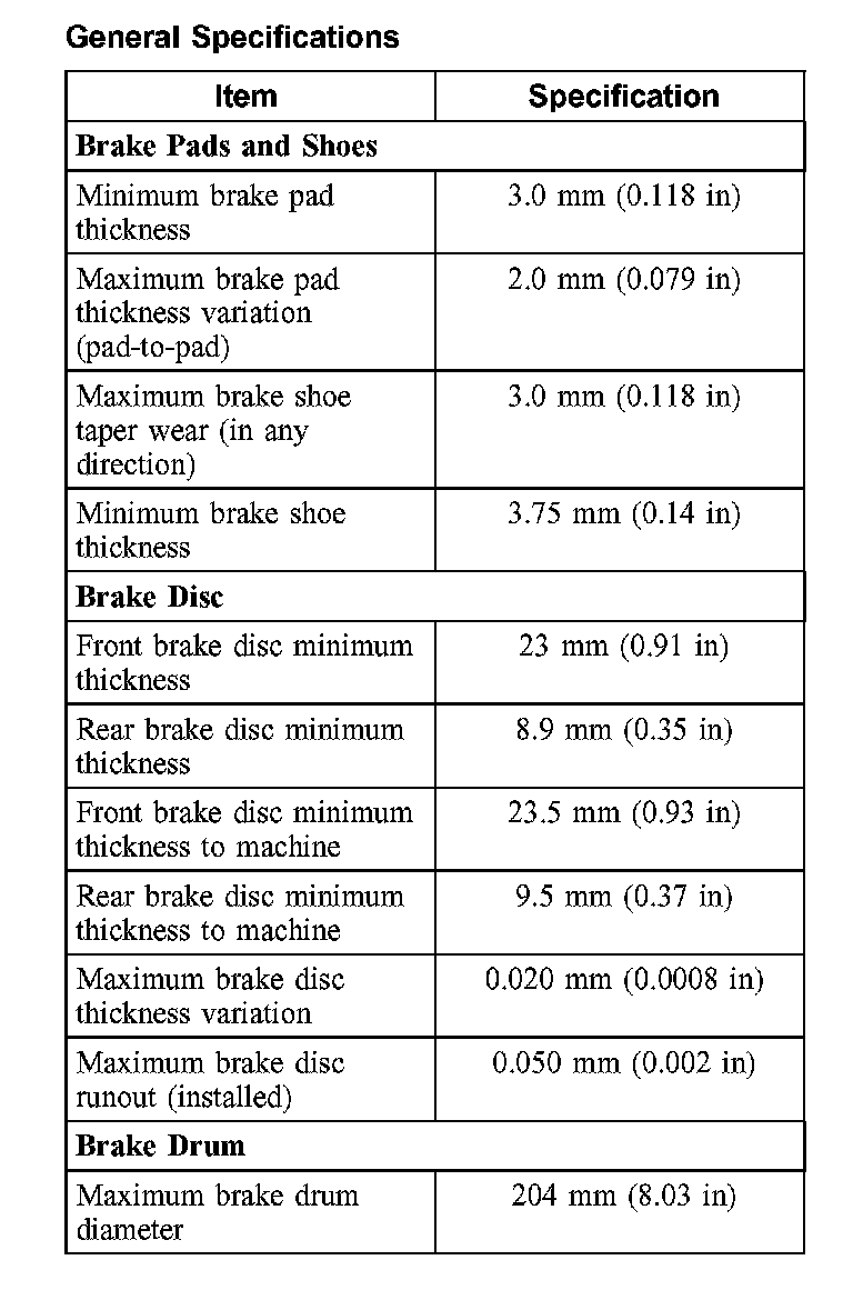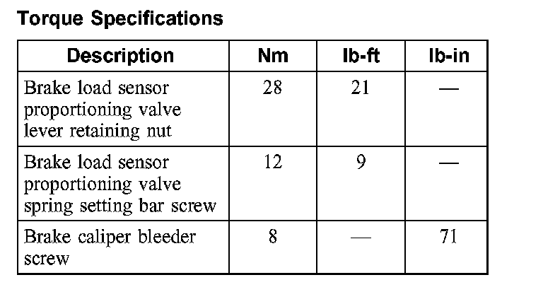 Torque Specifications: