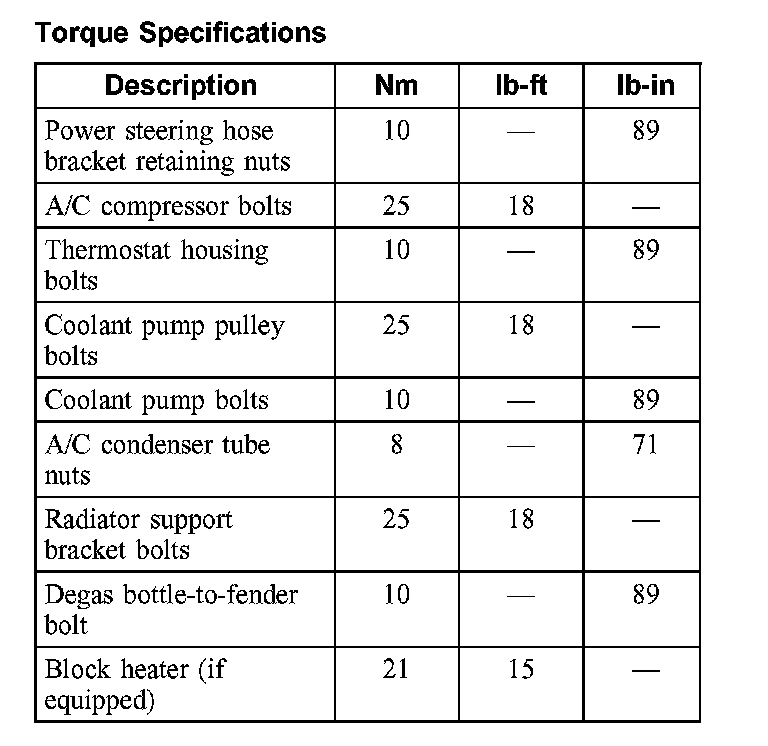 Torque Specifications: