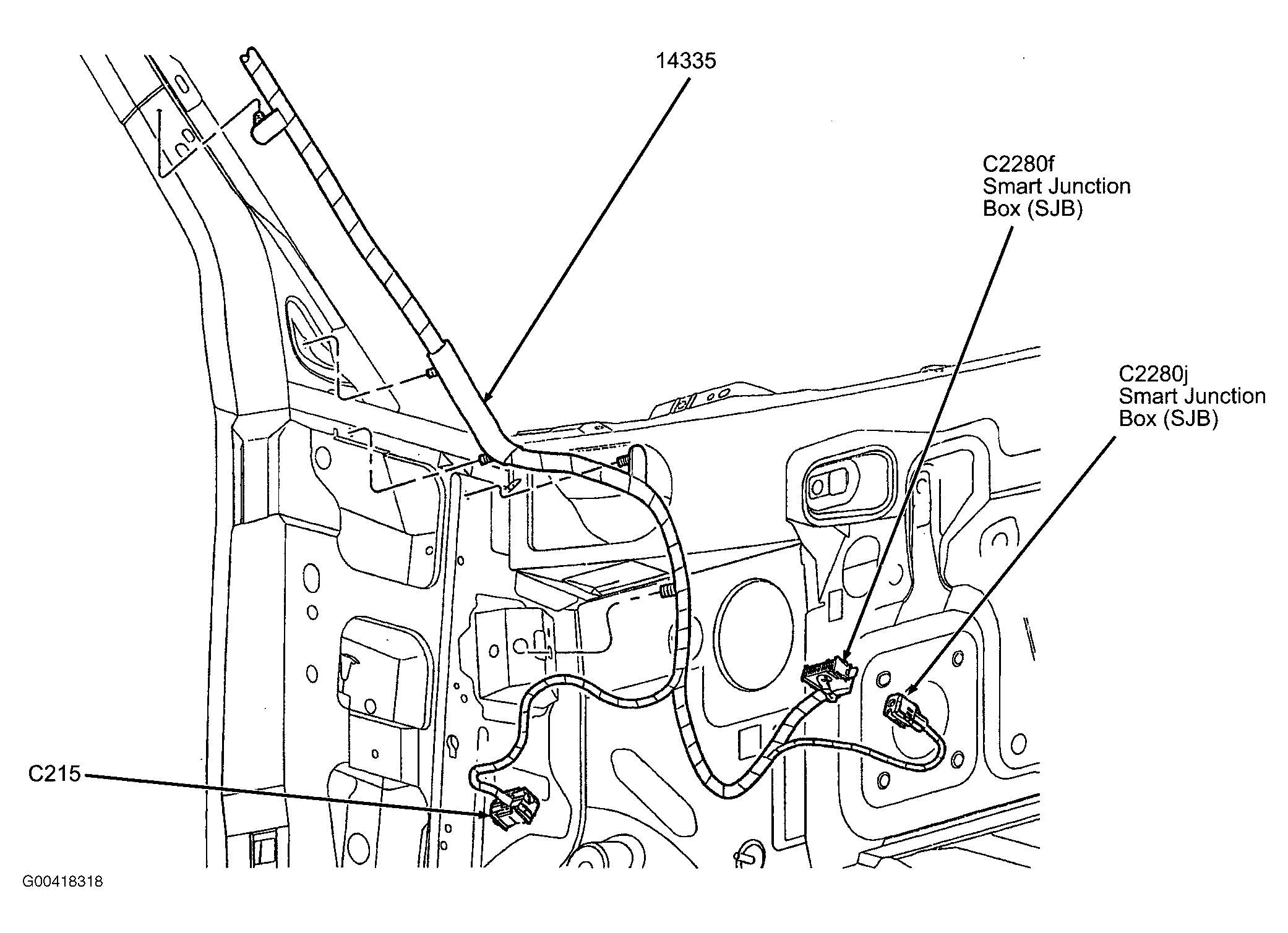 | C316 (Black, 12 Pin) | Left rear of vehicle, behind trim panel. See Figure. |