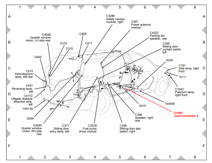 | C1497 | Vehicle underbody, under driver seat . See Figure. |