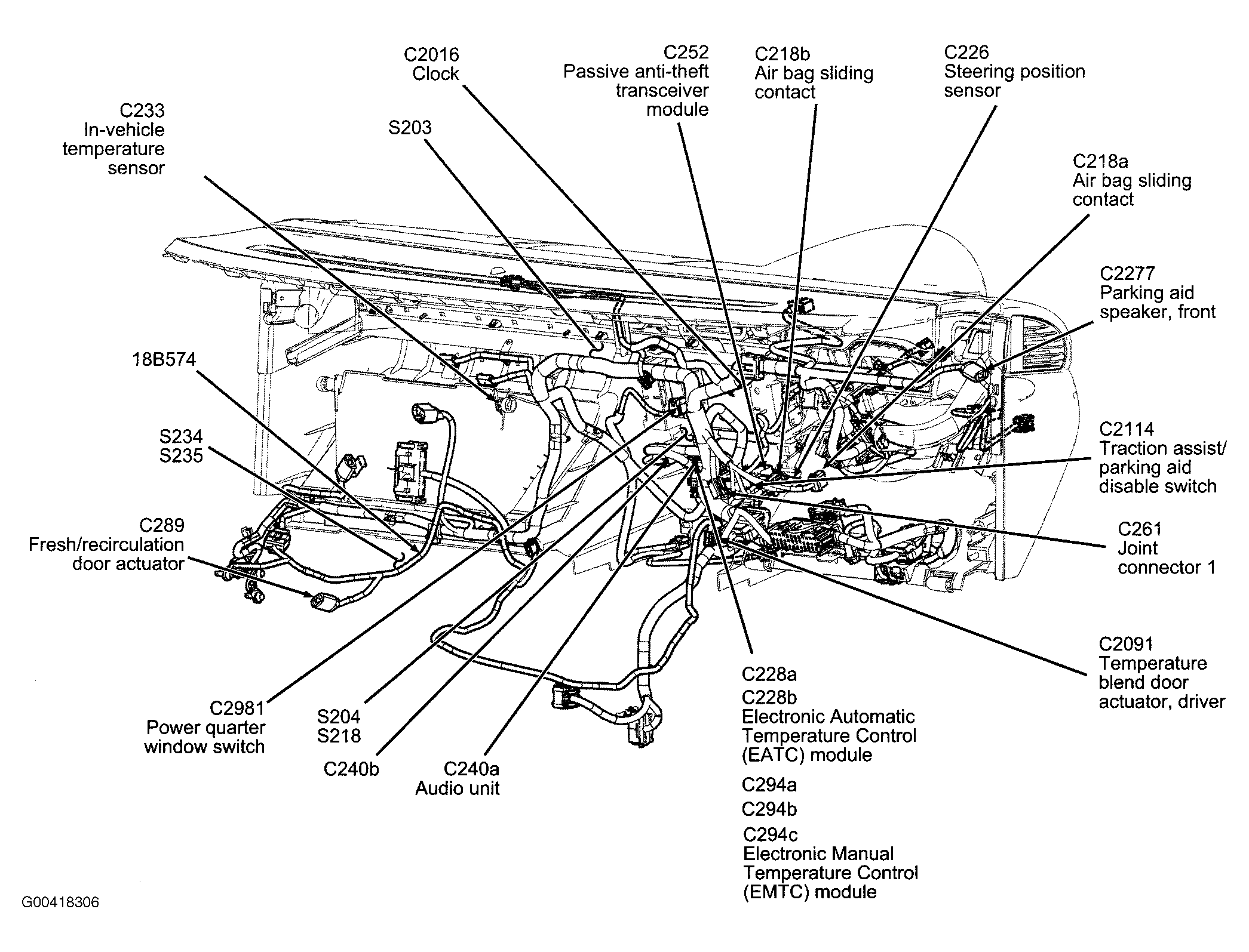 S204 Center of dash. See Figure.