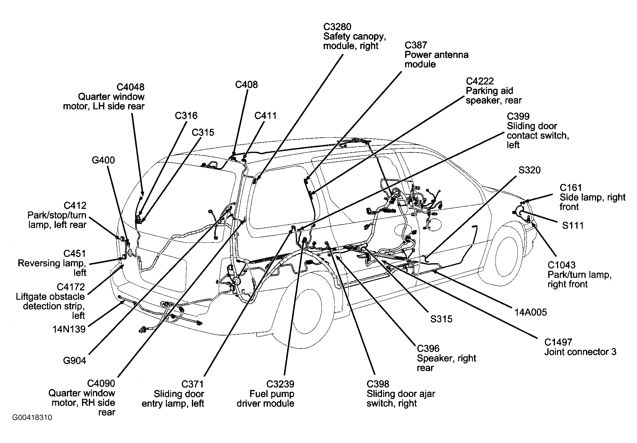 S310 In body main harness, near breakout for power liftgate module. See Figure.