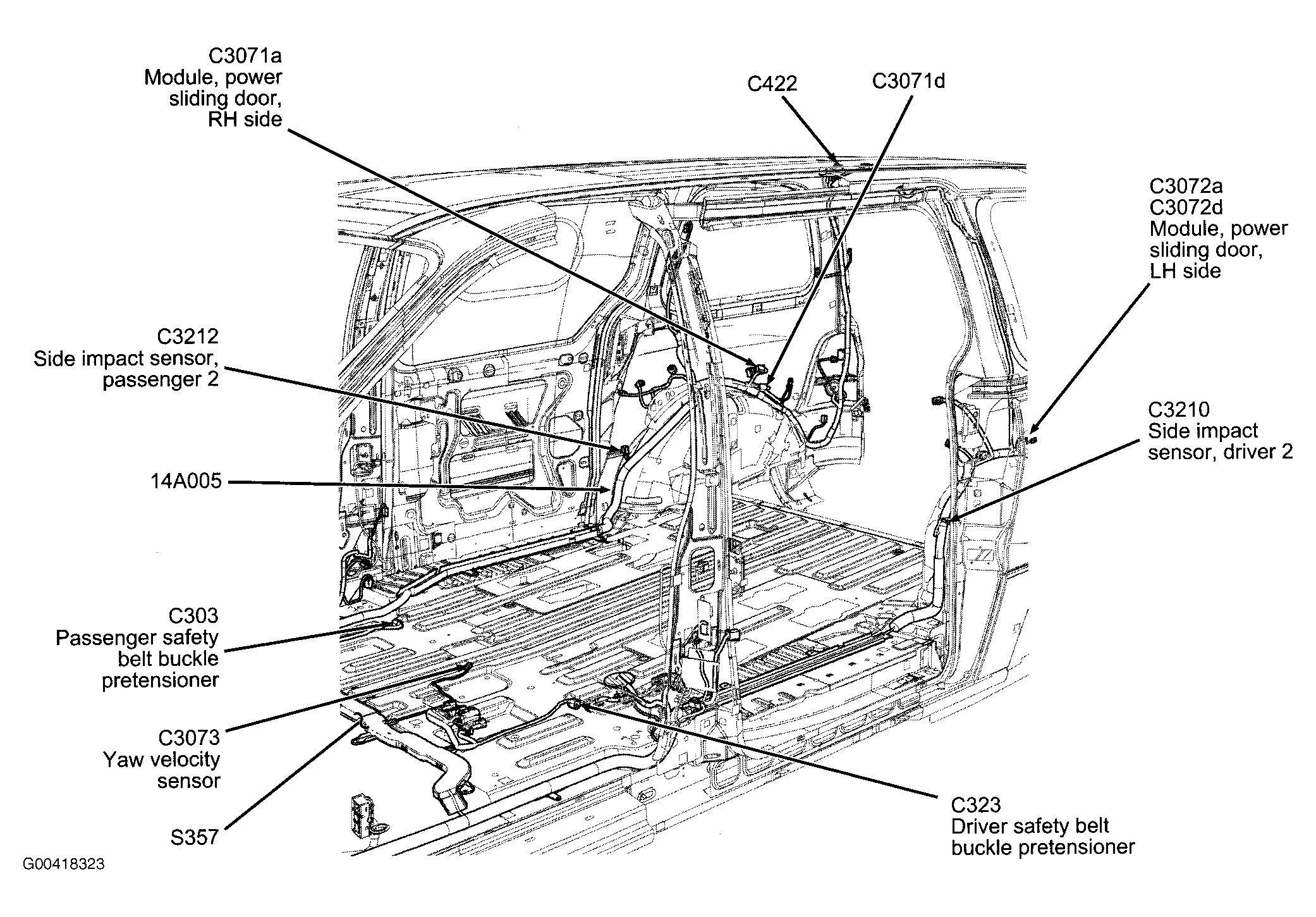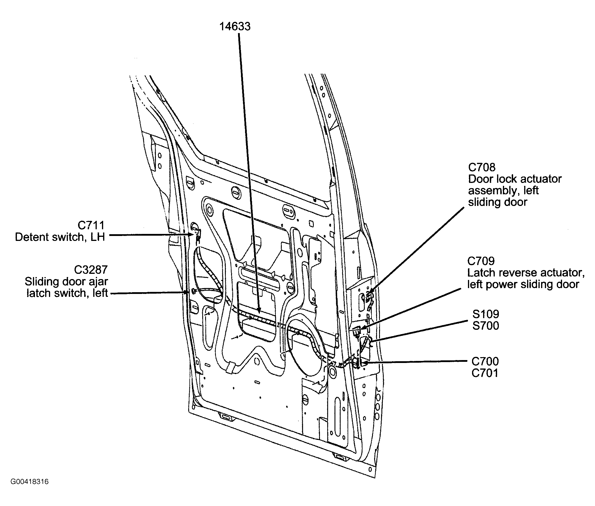 S110 In right rear sliding door harness. See Figure.
