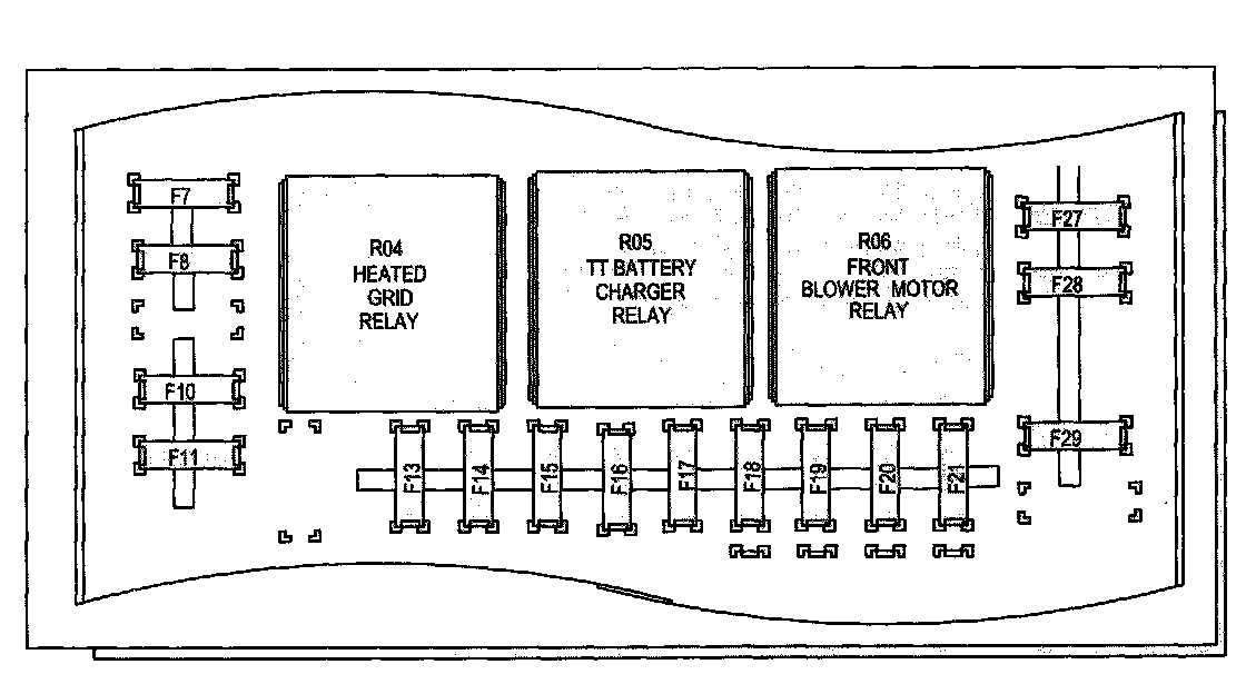 Fuse/Locations and Relay/Locations contains a view of the fuse-/relay box in which all fuses and relays are identified.