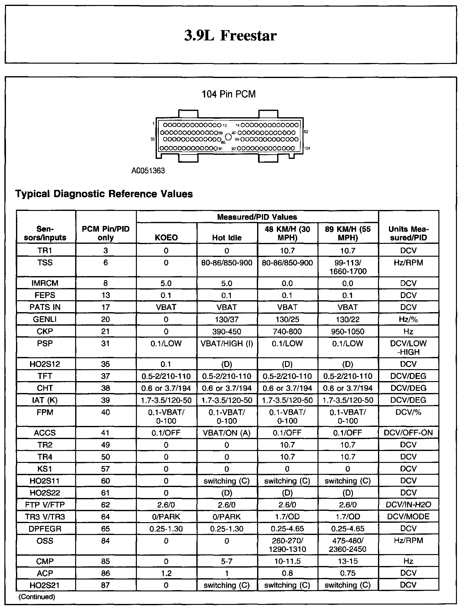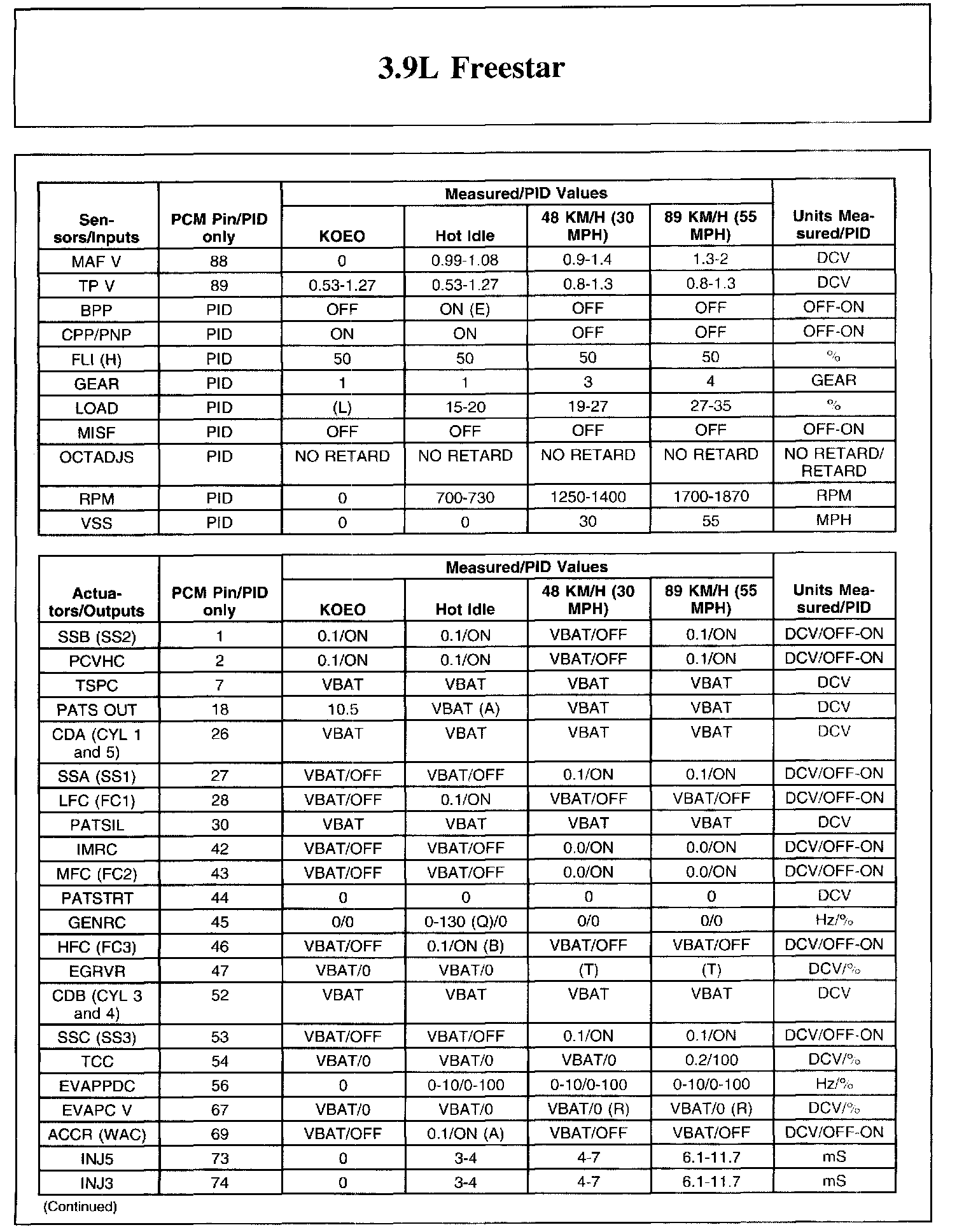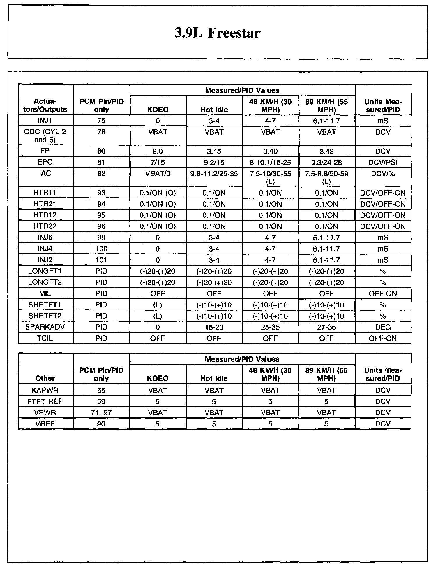 Home >> Ford >> 2006 >> Freestar V6-3.9L VIN 6 >> Repair and Diagnosis >> Powertrain Management >> Computers and Control Systems >> Testing and Inspection >> Scan Tool Testing and Procedures >> Typical Diagnostic Reference Values