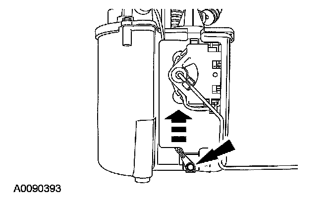 6. Wrap the sending unit wire around the fuel pump module wire harness to make sure the wire will not interfere with the movement of the fuel gauge sending unit float arm.