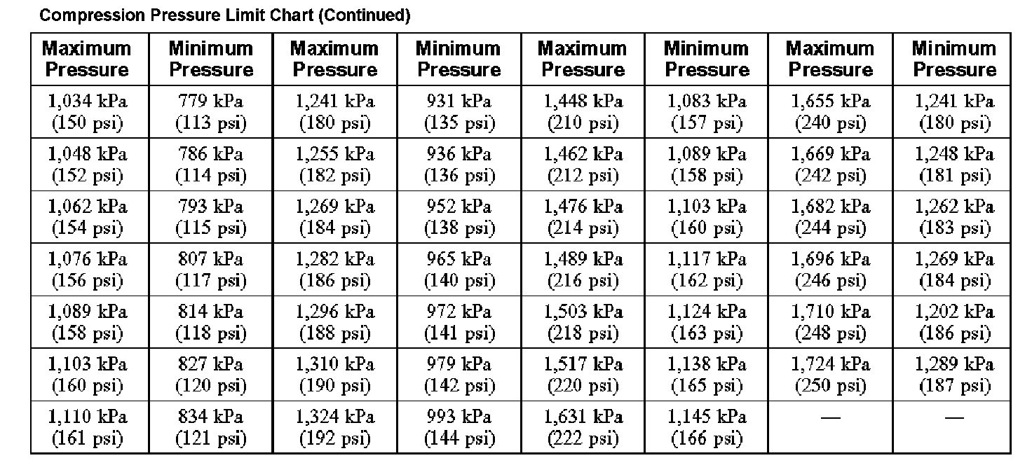 Compression Pressure Limit Chart (Part 2):