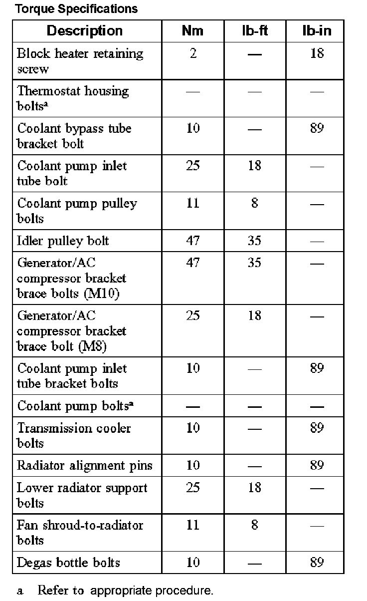 Torque Specifications