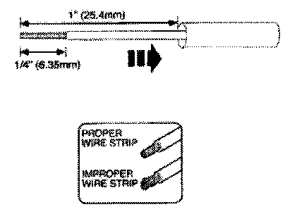 2. Strip 14" (6.35mm) of insulation from each wire end, taking care not to nick or cut wire strands.