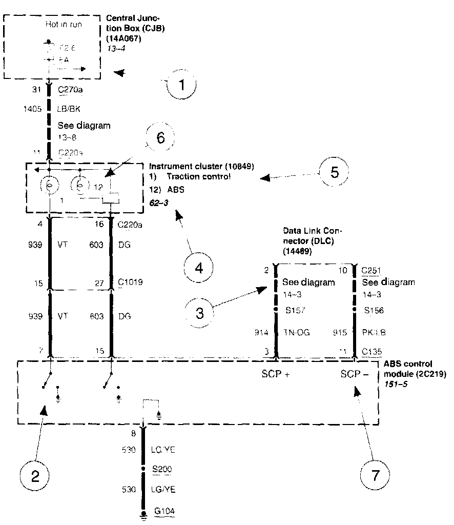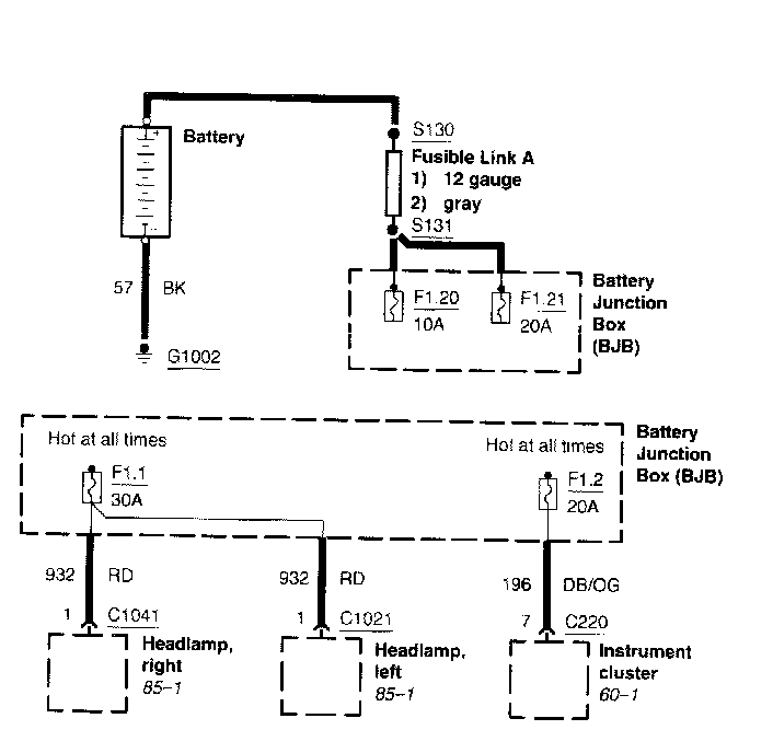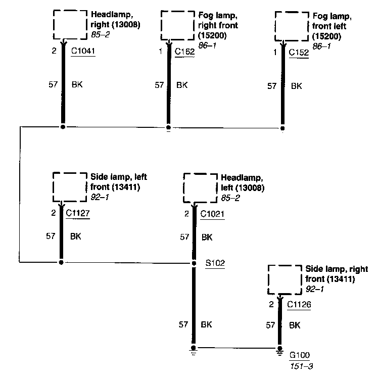 Each set normally starts with the component that powers the circuit, such as a fuse or the ignition switch. Current flow is shown from the power source at the top of the diagram to ground at the bottom of the diagram. In order to concentrate on the essential parts, power supply and ground connections are sometimes simplified by a dashed line in the diagrams. A full representation of the power supply of a fuse or the power distribution from a fuse to various components is given in the Power and Ground Distribution Diagrams. Full representation of the ground connections are shown in the Power and Ground Distribution Diagrams.