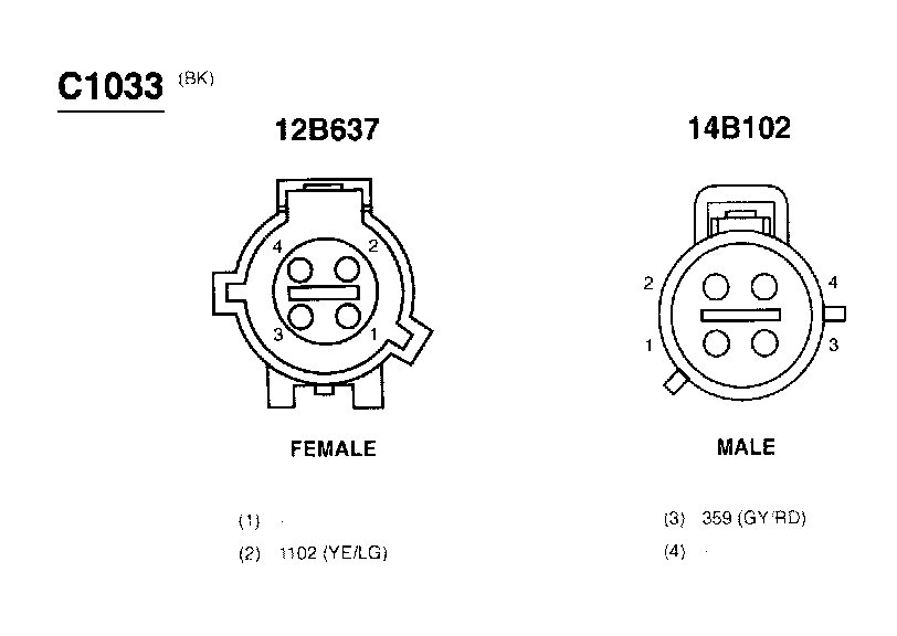 Connector Views show the views of the pins and/or cavities of all connectors. The pin and cavity sides are shown separately as if the connector were disconnected. The color of the connector housing is indicated next to the connector number when available. The harness causal number is located above the component name and below the connector number or above the connector face itself. Wiring harness designations are listed in Component Location Charts. Circuit function charts are located below each connector.