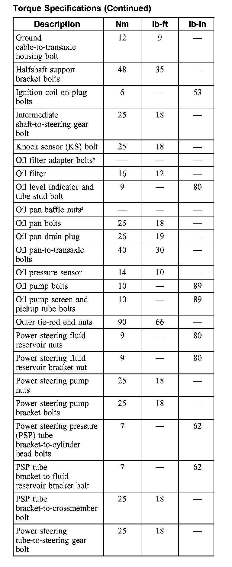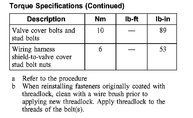 Torque Specifications:
