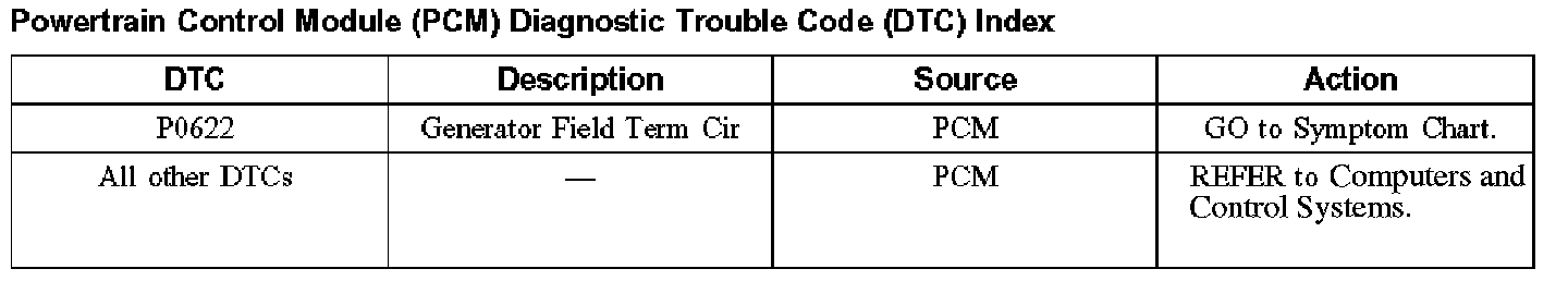 Powertrain Control Module (PCM) Diagnostic Trouble Code (DTC) Index