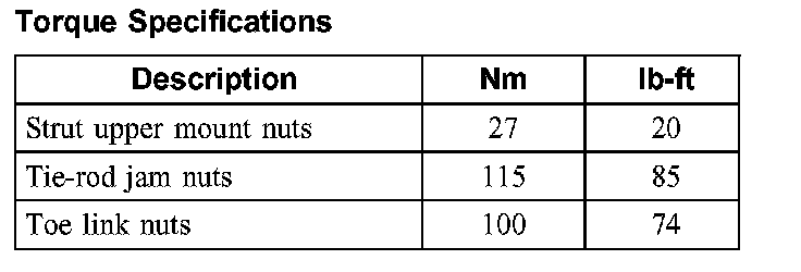 Torque Specifications: