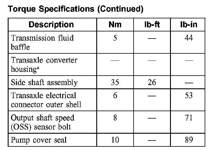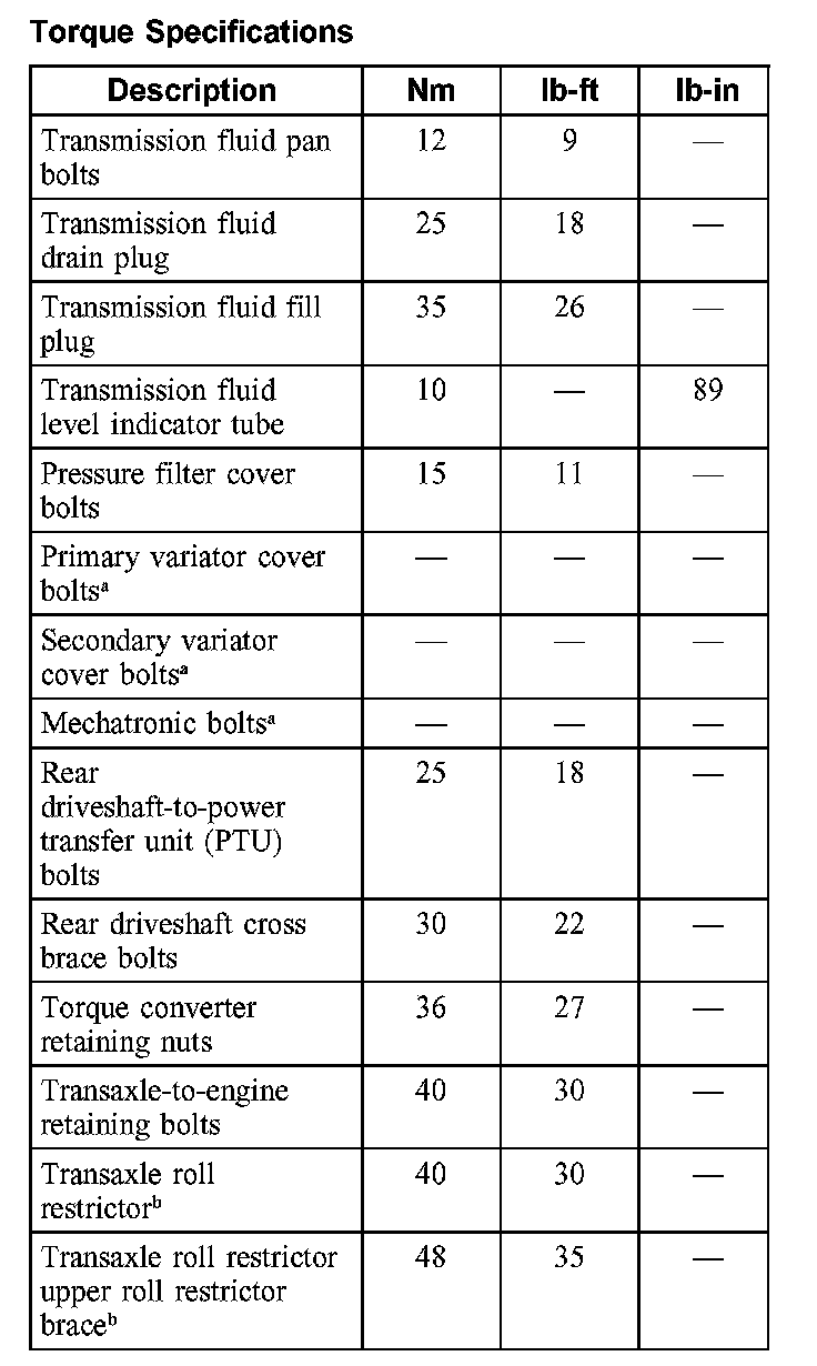 Torque Specifications: