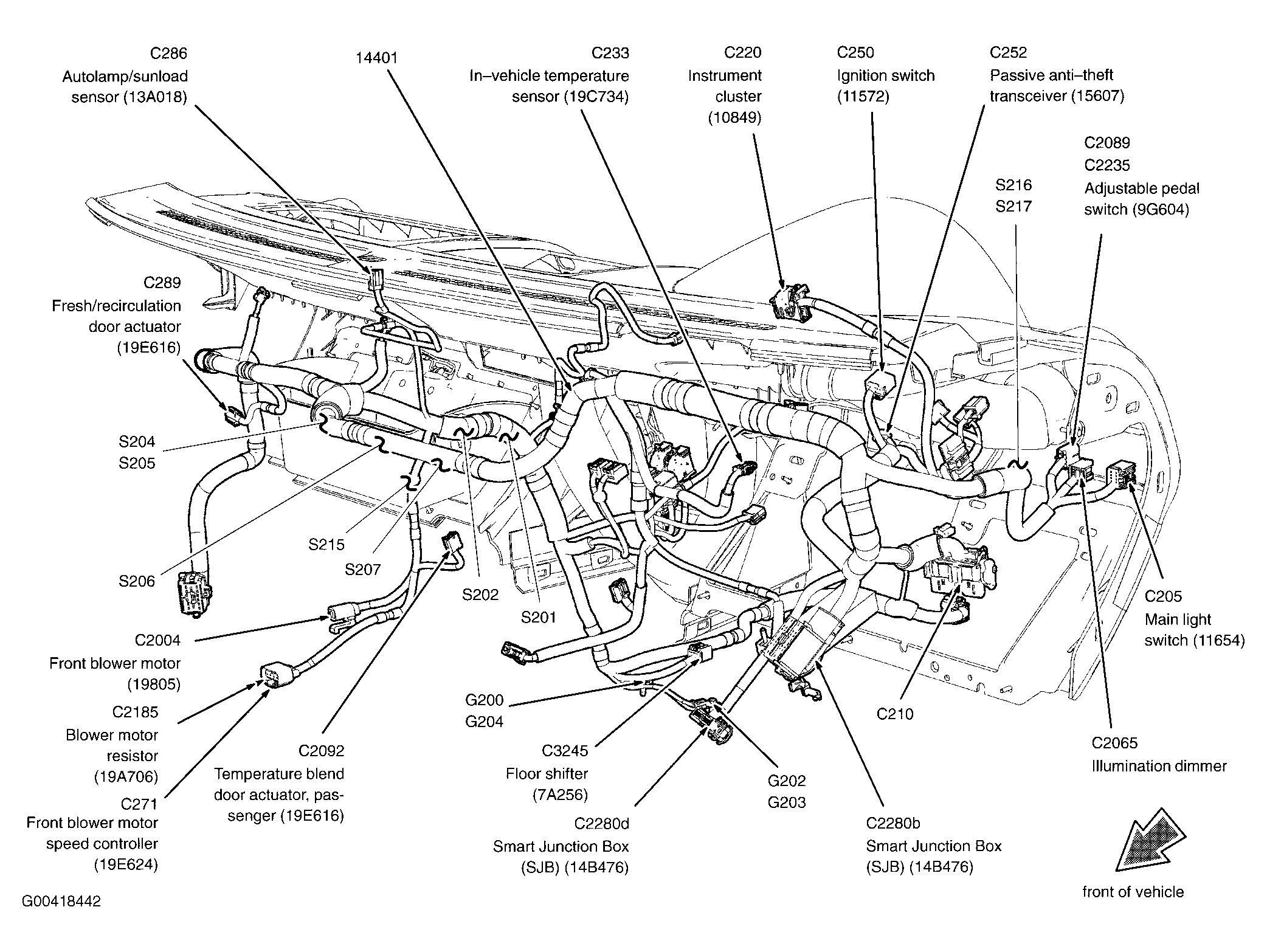 | Passive Anti-Theft Transceiver (Freestyle) | Left side of dash. See Figure. |