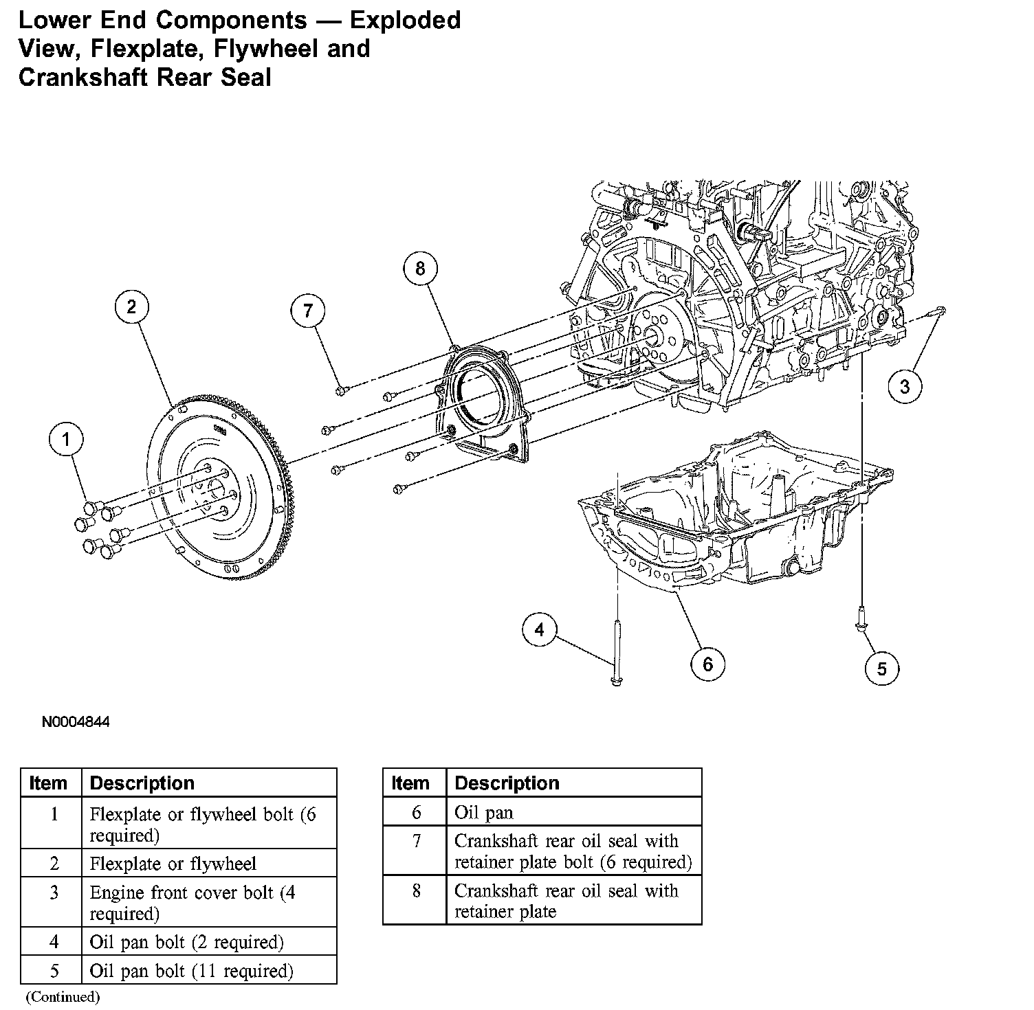 Lower End Components - Exploded View, Flexplate, Flywheel and Crankshaft Rear Seal: