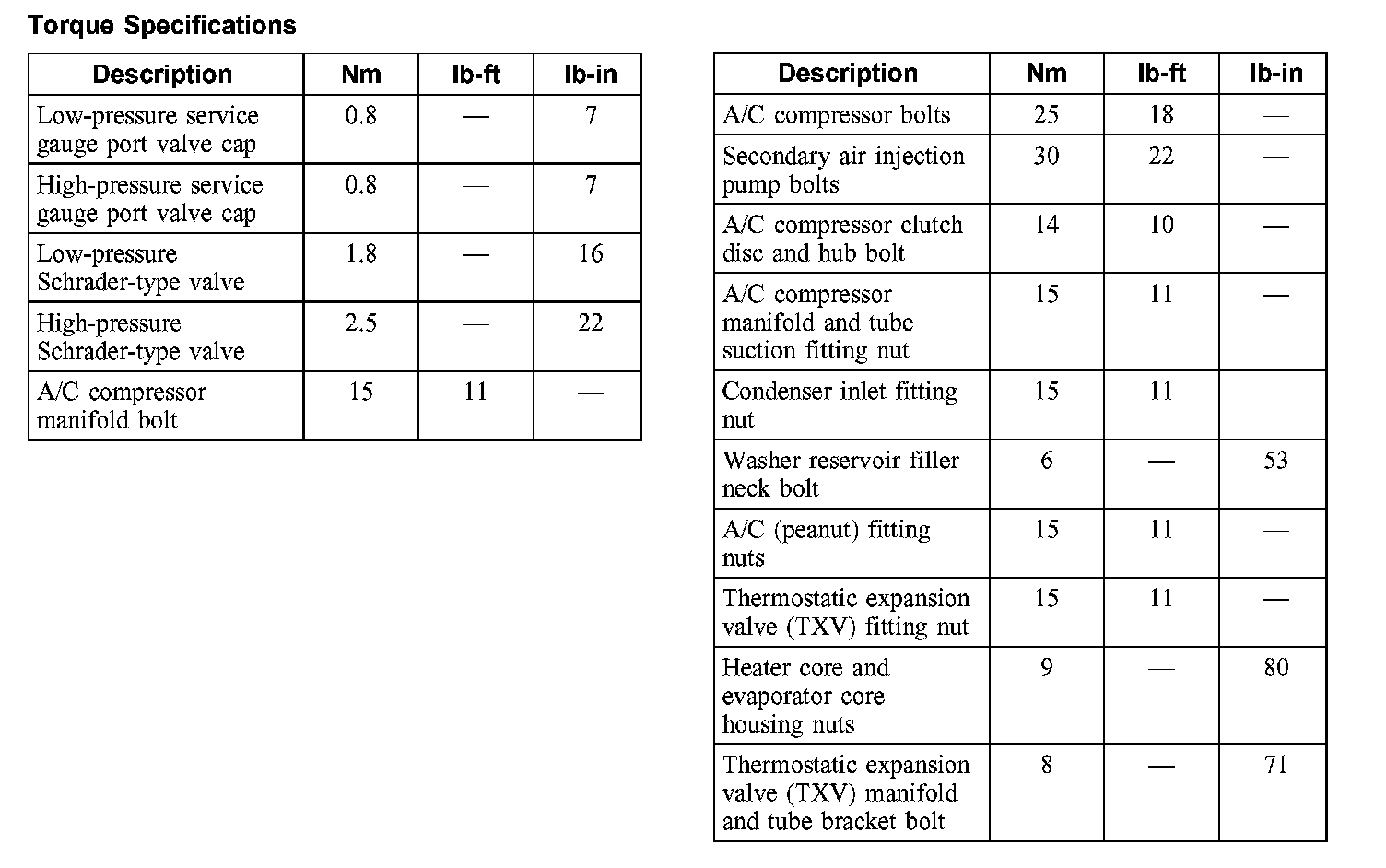 Torque Specifications