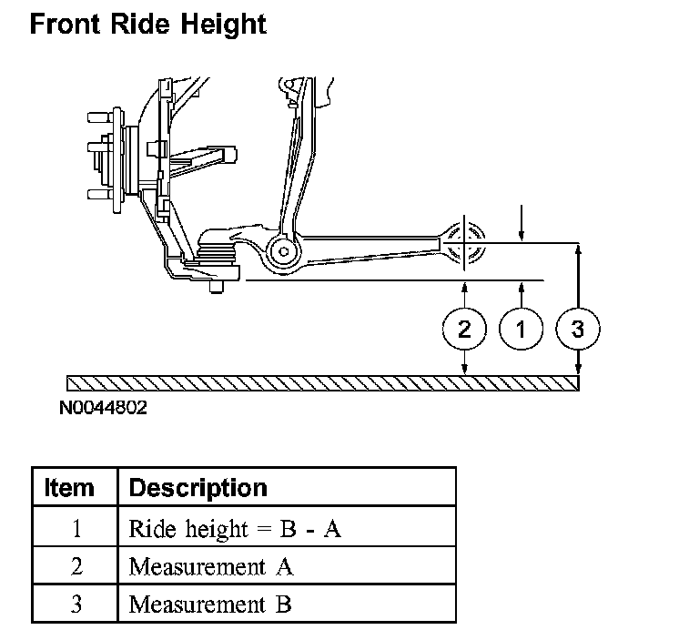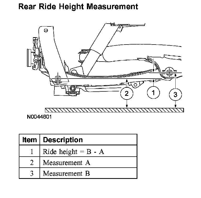 To measure ride height, the vehicle must be in a level, static ground position with full fluids and the fuel tank at least 1/2 full.