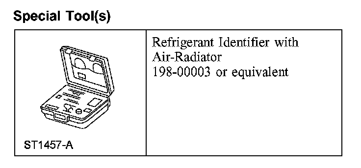 1. NOTE: An A/C refrigerant analyzer must be used to identify gas samples taken directly from the refrigeration system or storage containers prior to recovering or charging the refrigerant system.