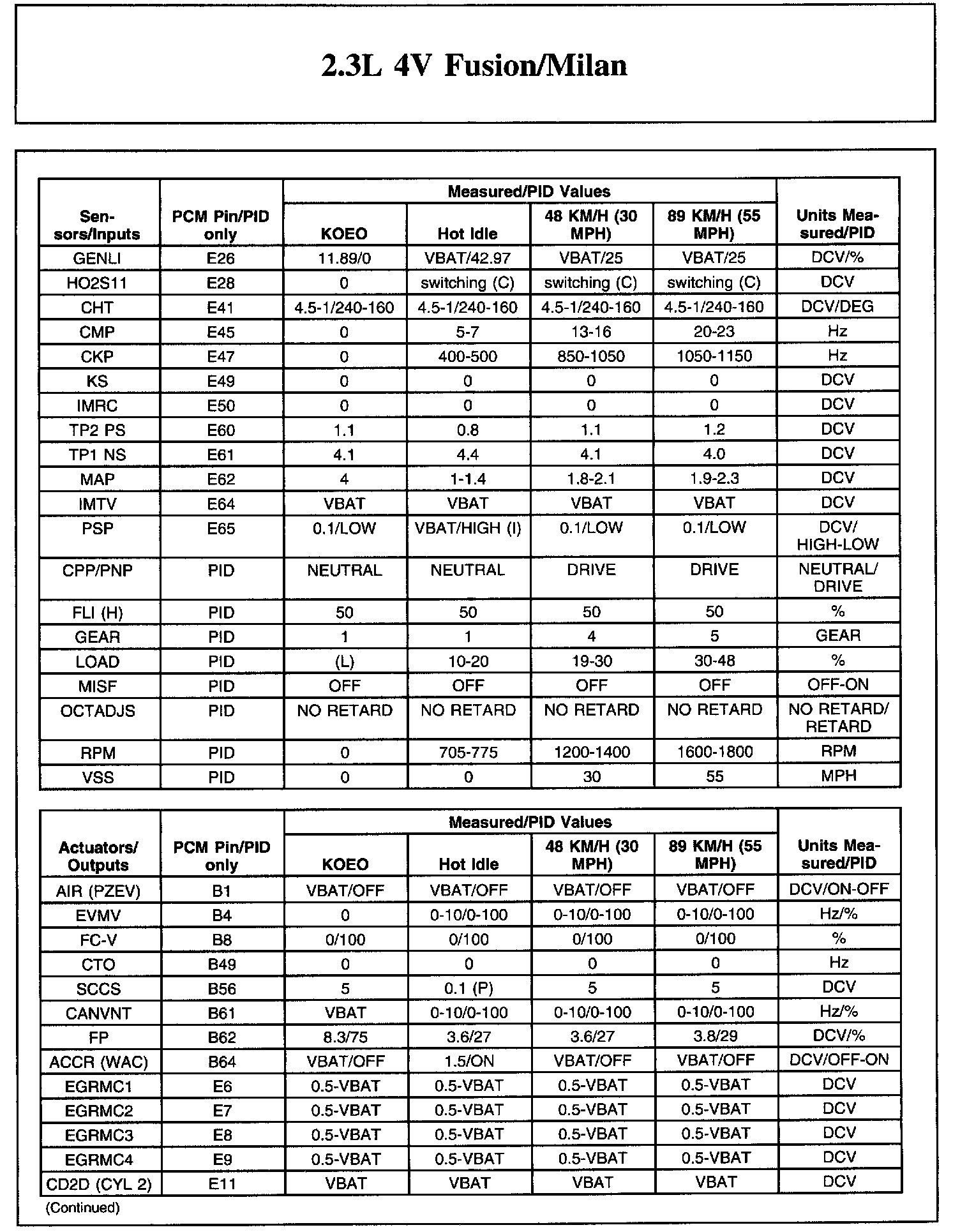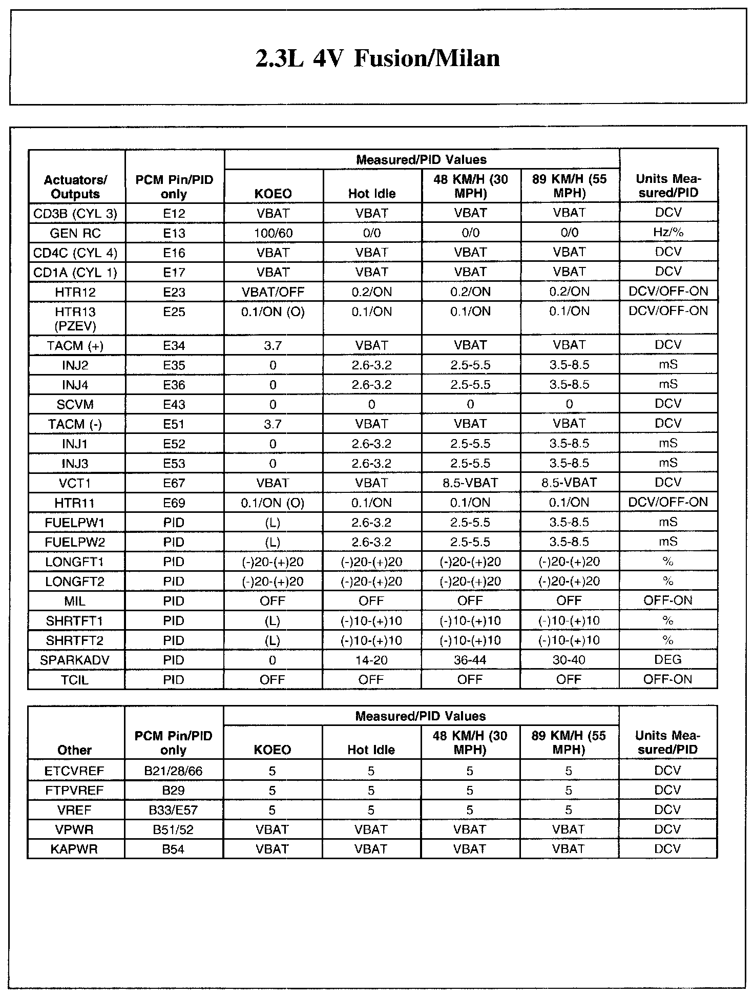 Home >> Ford >> 2006 >> Fusion L4-2.3L VIN Z >> Repair and Diagnosis >> Powertrain Management >> Computers and Control Systems >> Testing and Inspection >> Scan Tool Testing and Procedures >> Typical Diagnostic Reference Values